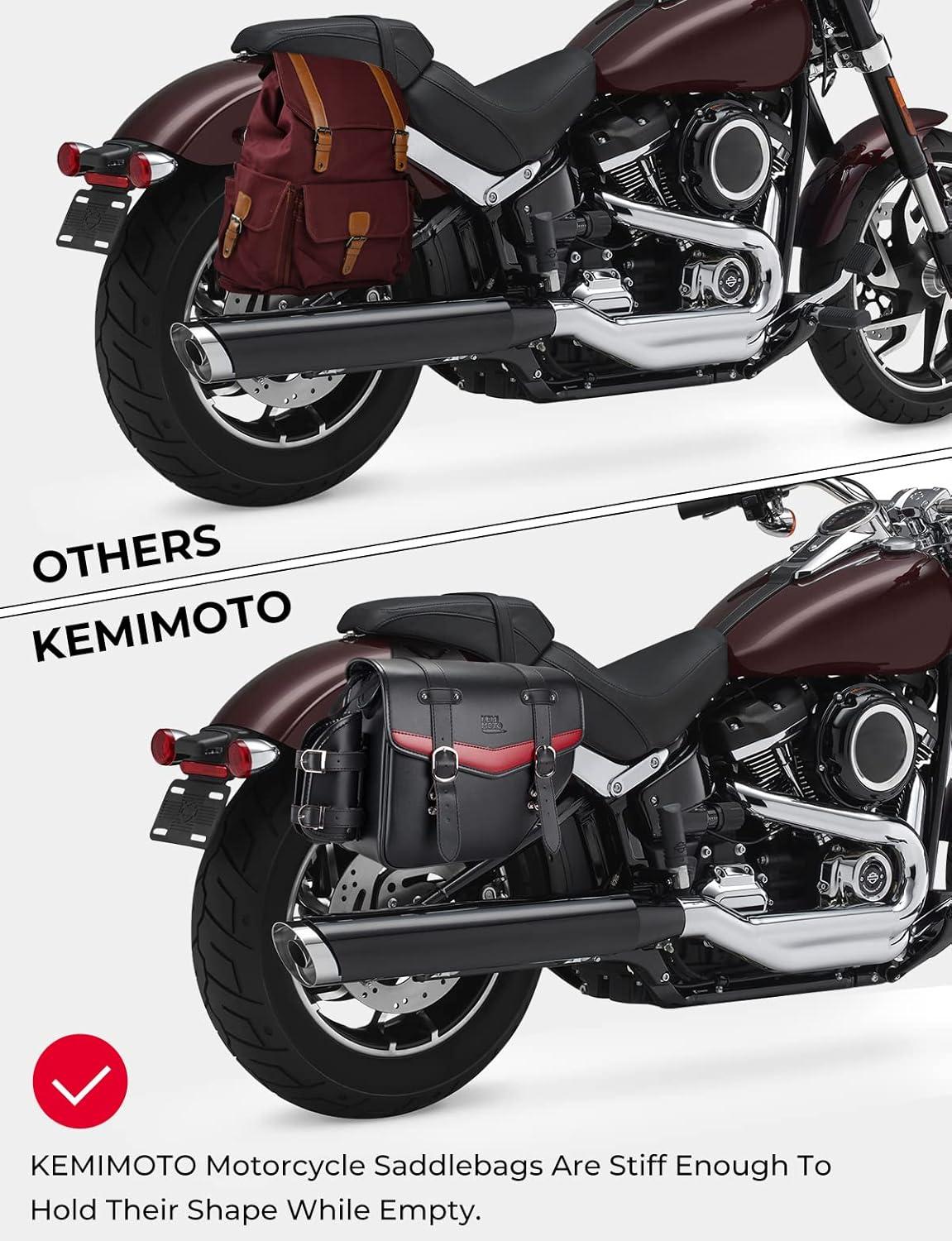 18L Large Capacity:The motorcycle saddle bag offers ample storage space for all your essential items, including cups, drinks, gloves, jackets, wallets, headphones, power banks, raincoats, groceries, tools, and more. Kemimoto saddle bags are more convenient and easy to locate on your motorcycle. They are the ideal choice for your daily commutes and short getaways. Note: Please make sure the clearance between the saddlebags and the tailpipe is at least 3 inches