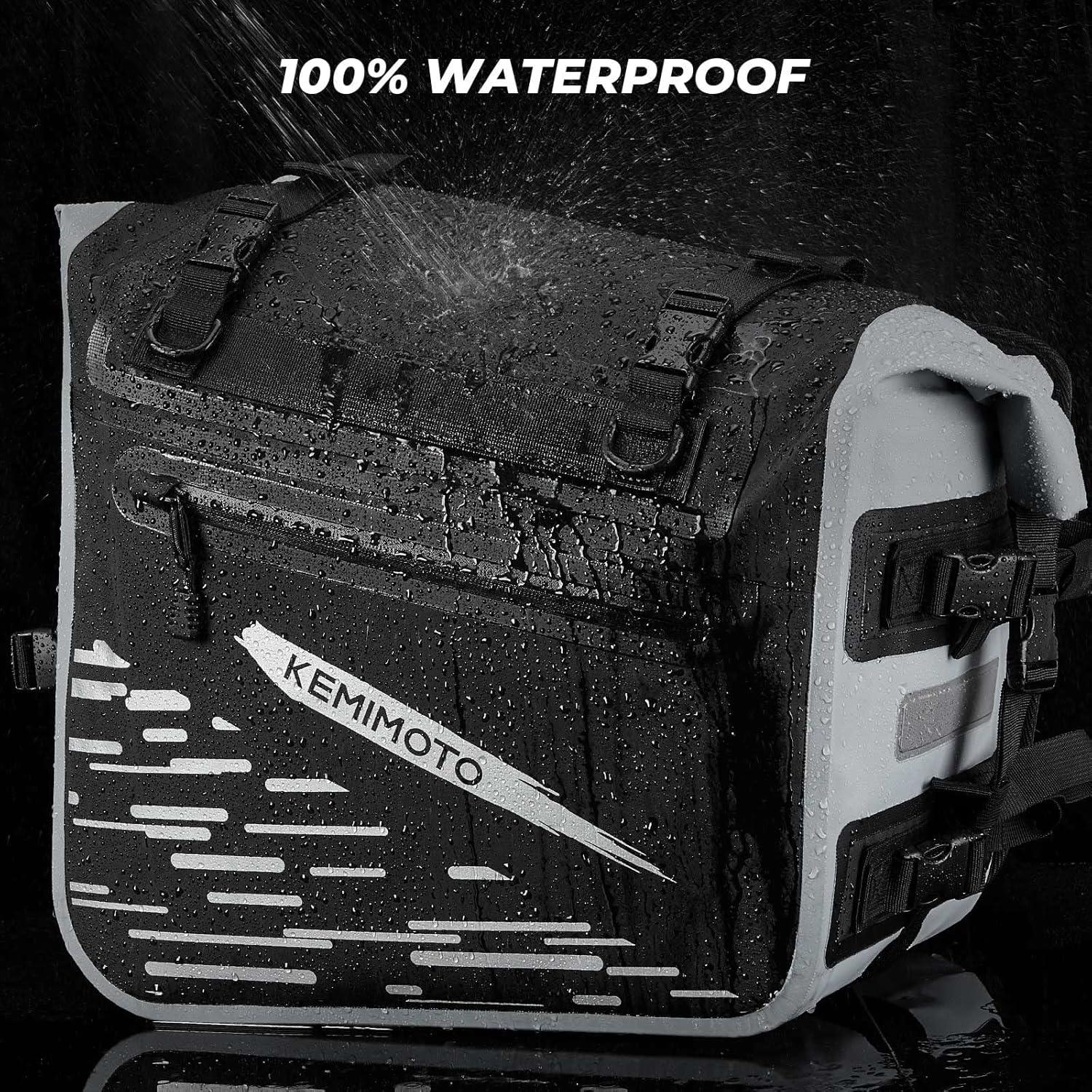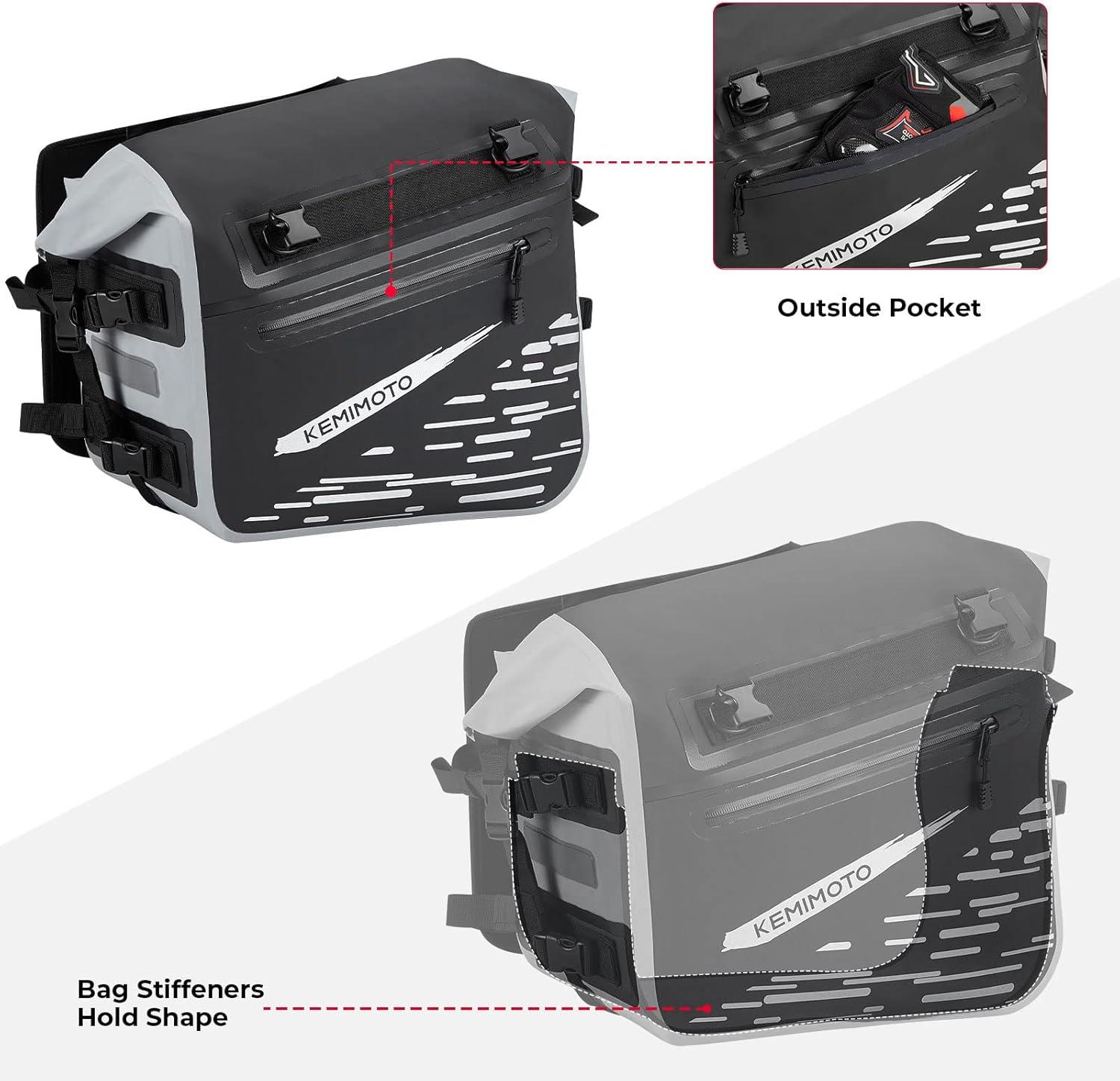 WATERPROOF: The waterproof motorcycle saddle bags are made with 500D PVC waterproof material. Super sturdy and suitable for different riding venues. (THE SIDE POCKETS ARE NOT WATERPROOF)