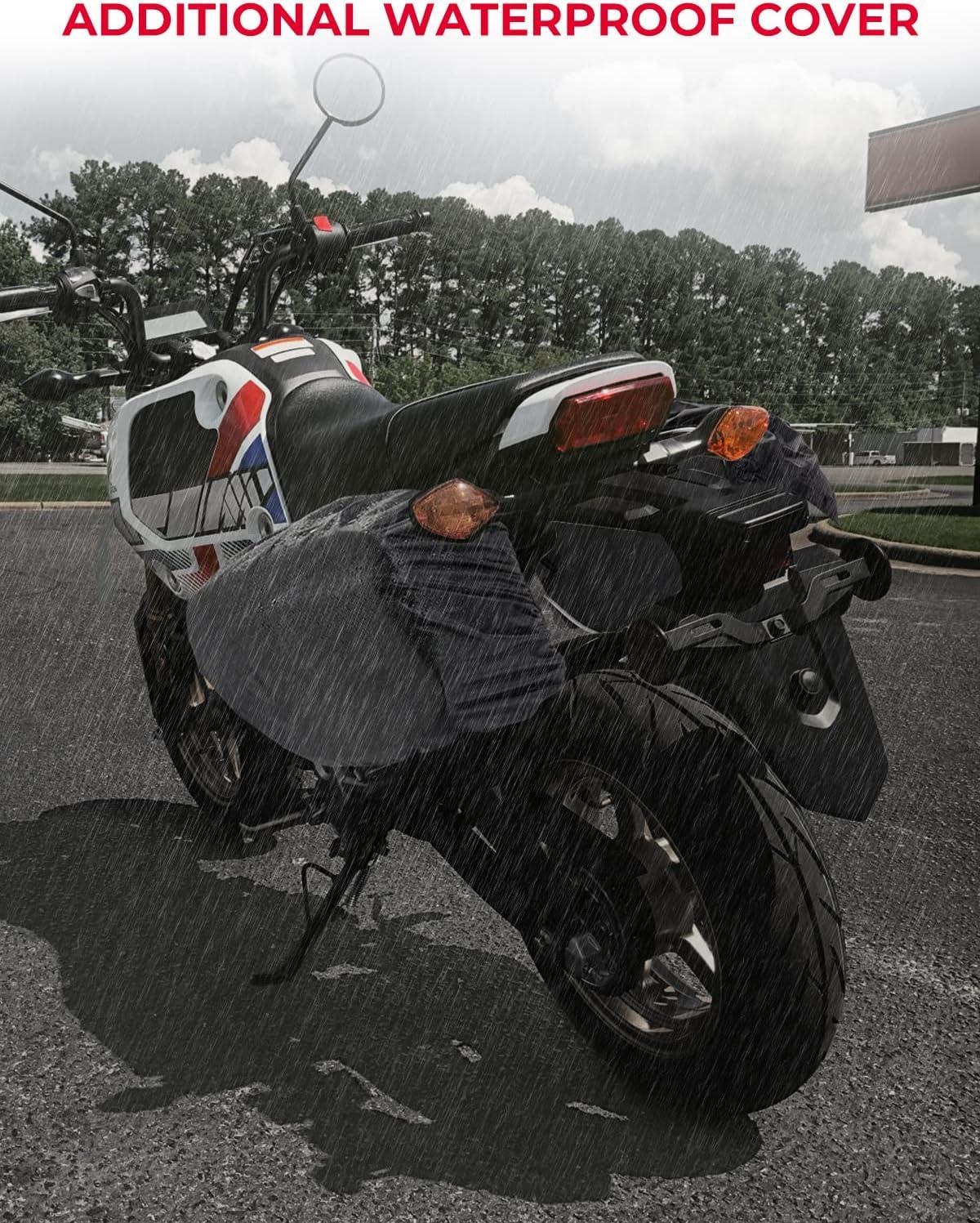 Material: Motorcycle saddlebags are made of high-quality waterproof Oxford, come with TWO RAIN COVER to keep some rain out or dusty, and using a rain cover on rainy days can better keep the bags dry.