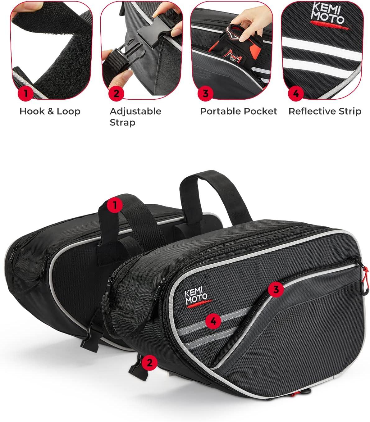 Easy to install: Our saddlebags can be installed either way. A saddle bag with a hook and loop tape fixed and adjustable strap can be easily fixed on the motorcycle, suitable for commuting to work, shopping, and short outings.(We Recommend Using This Saddlebags with Our GROM LUGGAGE SIDE RACK to Extend the Life of the Bag and Reduce Wear and Tear.)