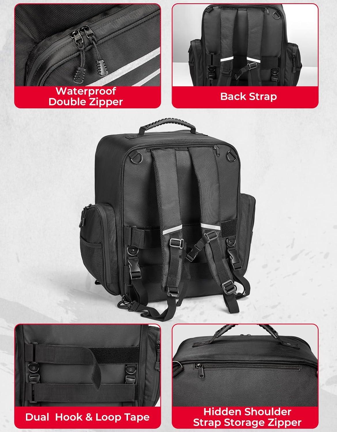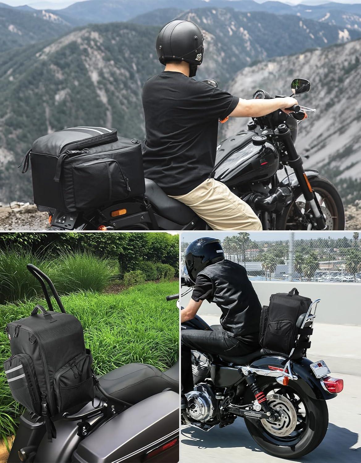 Wide Suitability: The riding backpack tail bag for motorcycle is compatible with Touring, Softail, Dyna, Sportster, Dirt bike, Dual Sport, Grom, CT125, Trike, Glide, Cruiser, Adventure, 1100 V-star, Shadow, UTV and more large long-distance motorcycle modles for women men motorcycle riders