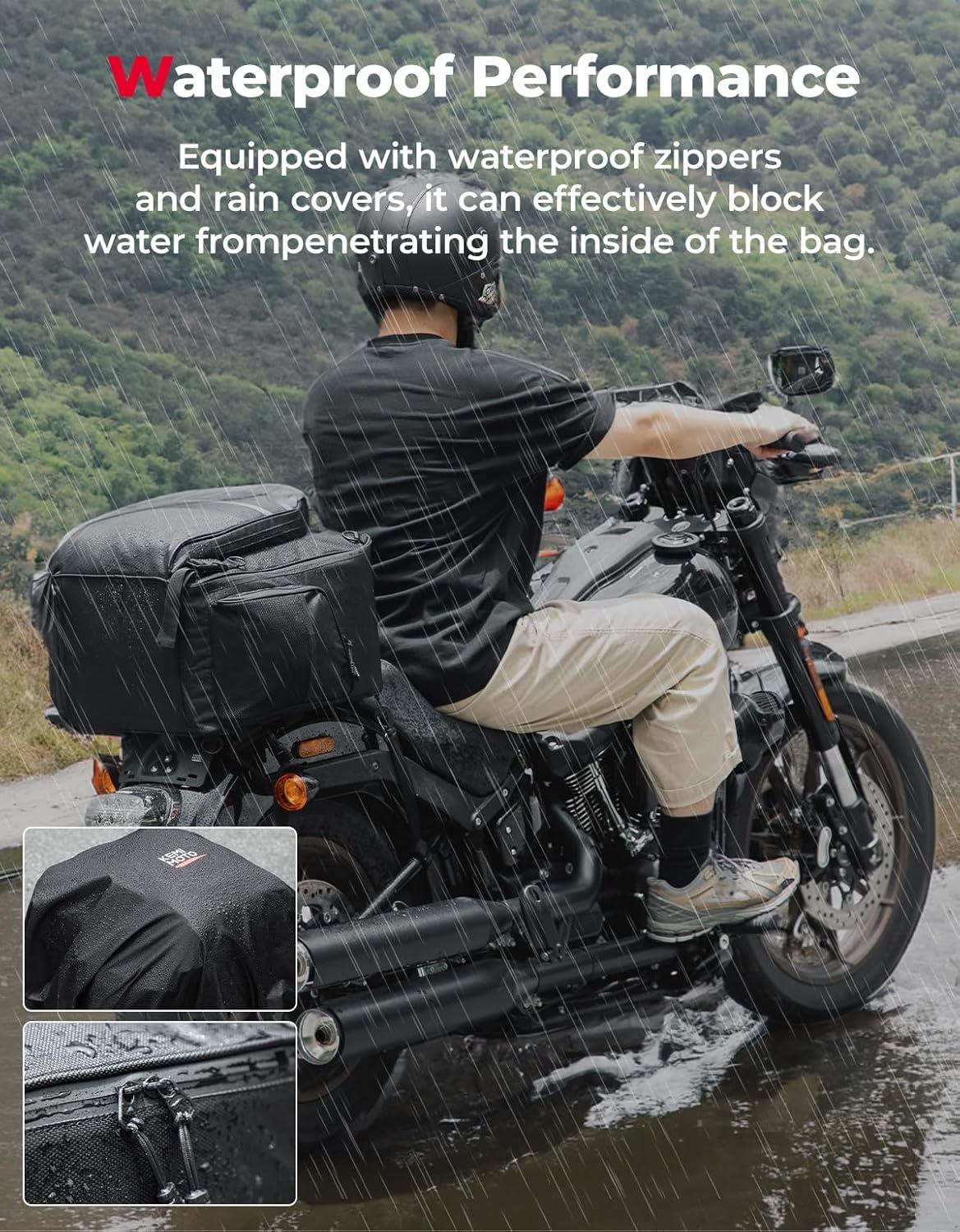 Waterproof Zipper and Rain Cover: Our motorcycle bags and luggage is made of Oxford fabric and waterproof zipper material, ensuring excellent water-resistant, hard wearing, and scratch-resistant. And it also provides a rain cover, even on rainy days, it can protect your bag on light rain and dusty roads, effectively protecting your items from water and dirt