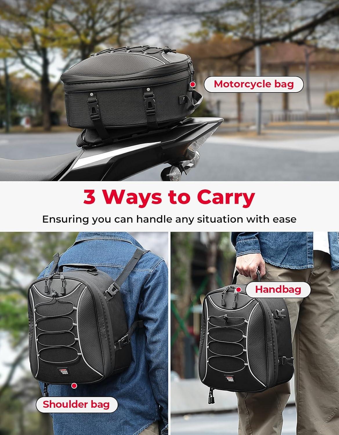 【Universal Dual Use Bag】 Our motorcycle rear seat bag was designed with universal strap mount for motorcycles. Dual multifunctional used as a handbag and backpack for easy movement.