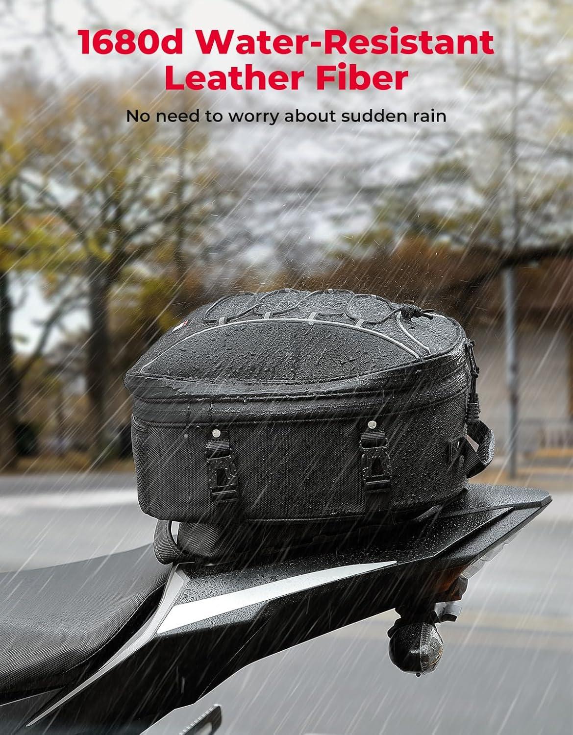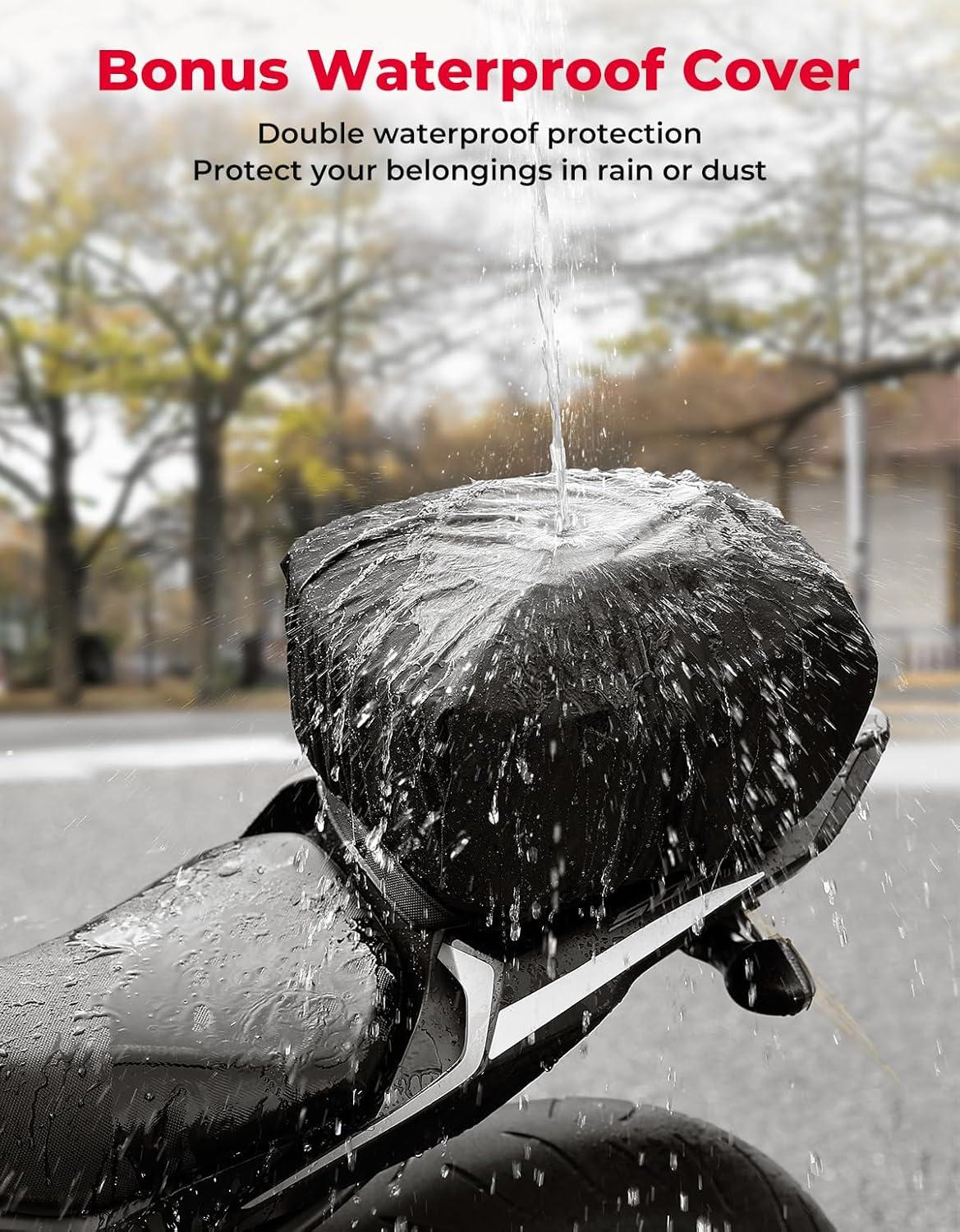 【Brilliant Rain Cover】kemimoto motorcycle rear bag constructed from 1680D leather fiber, which water-resistant, tear-resistant and highly durable. A totally waterproof bag with rain cover to keep your luggage getting wet.