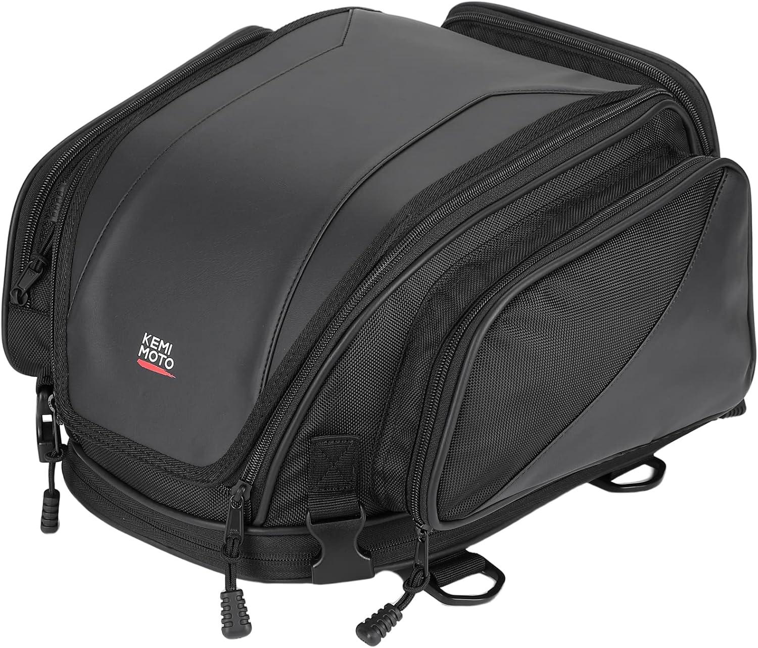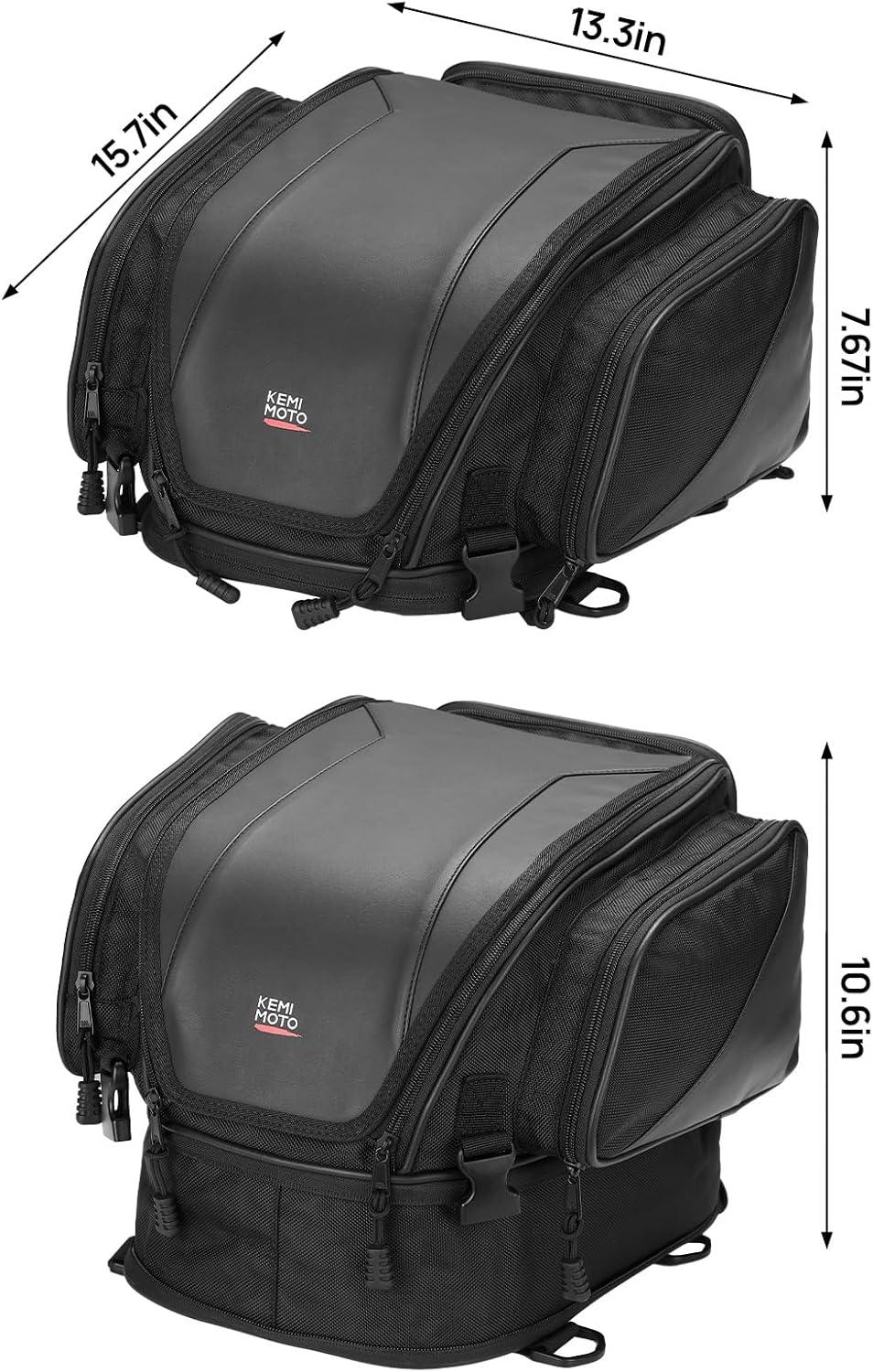 【Capacity】18L-22L. If you need more space, motorcycle sissy bar bags can expand giving you an additional 3 Liters of space to put your half helmet.