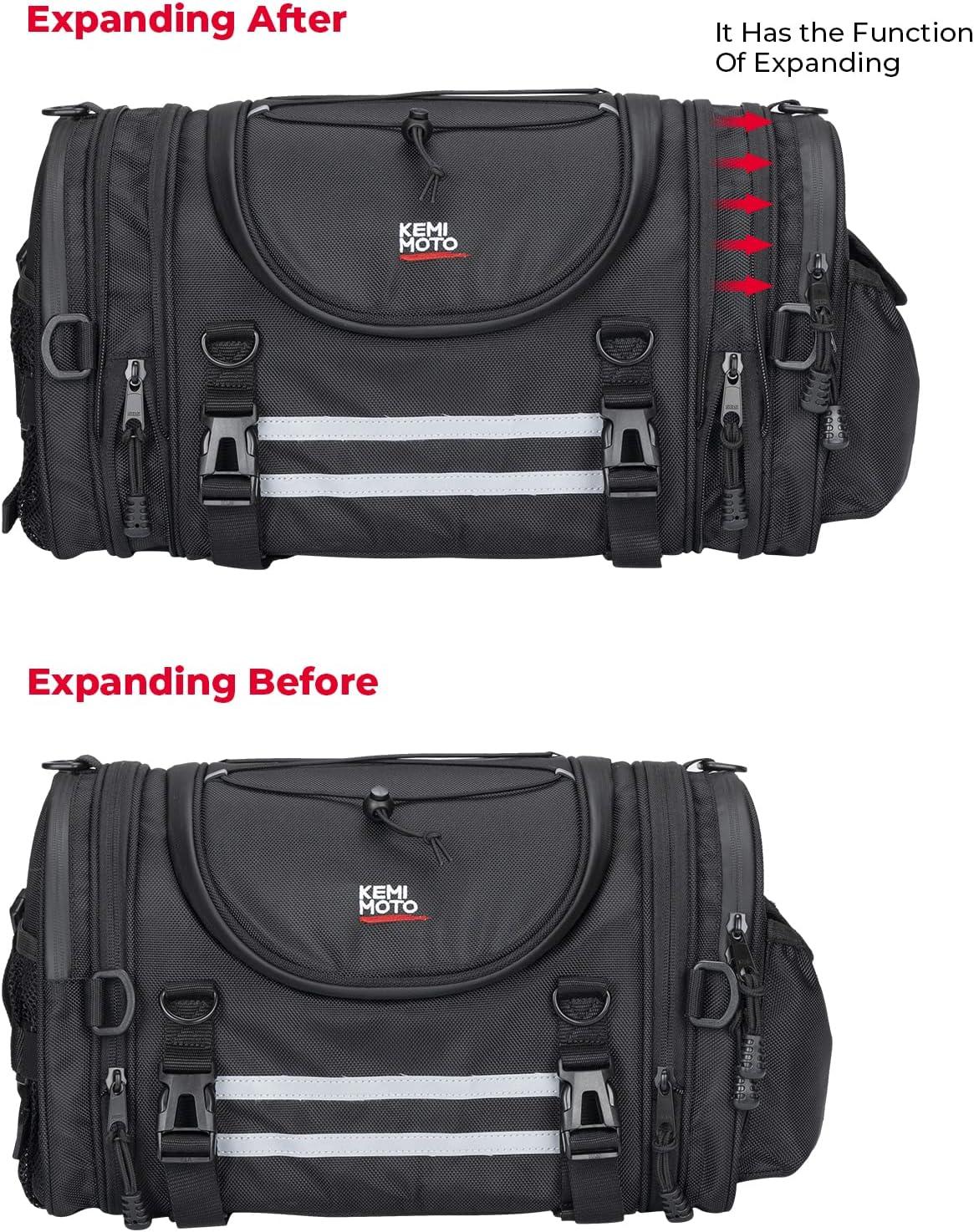 KEMIMOTO Motorcycle Travel Luggage Bags 25L Motorcycle Tail Bags Expandable Sissy Bar Rear Seat Roll Helmet Storage with 4 Straps
