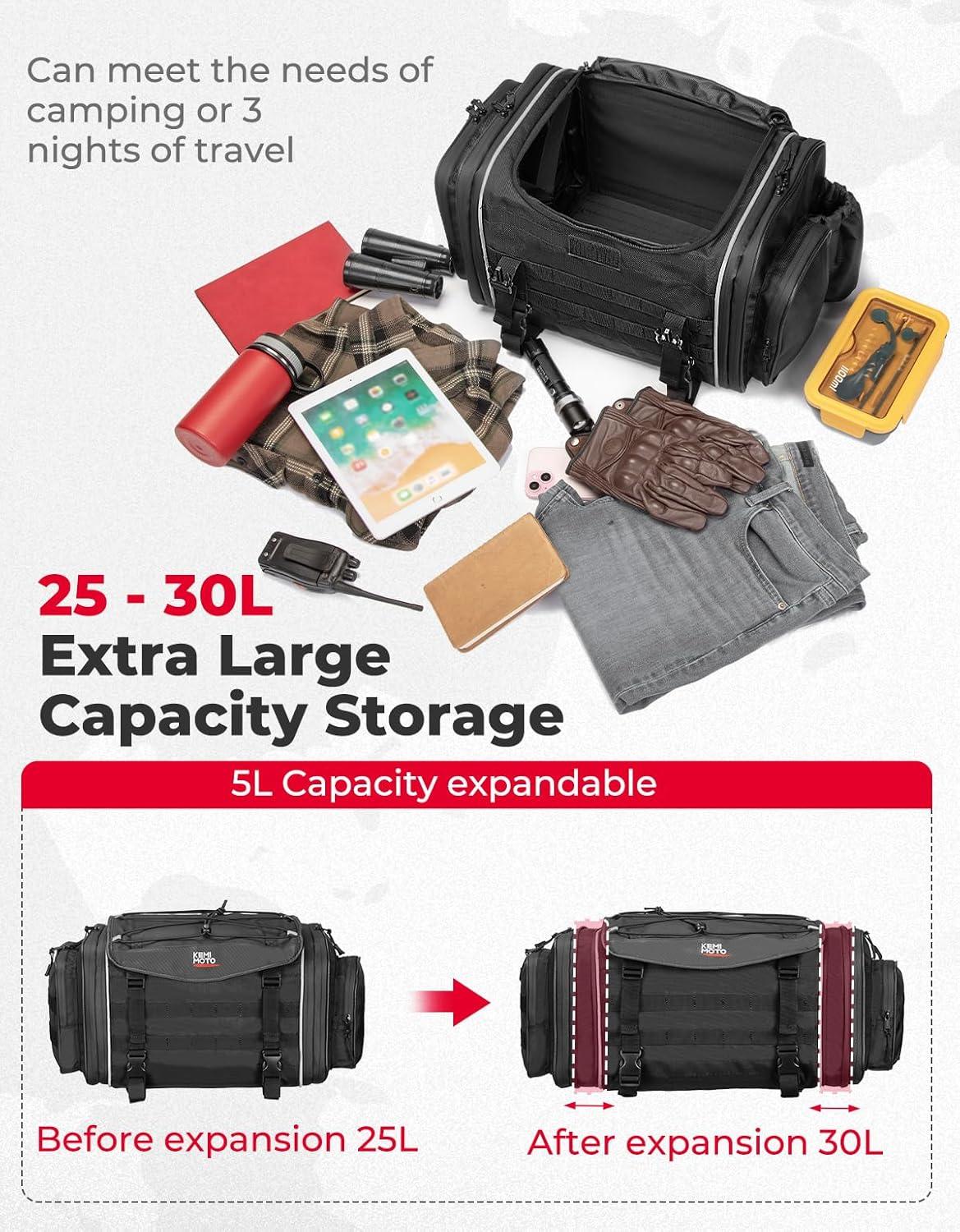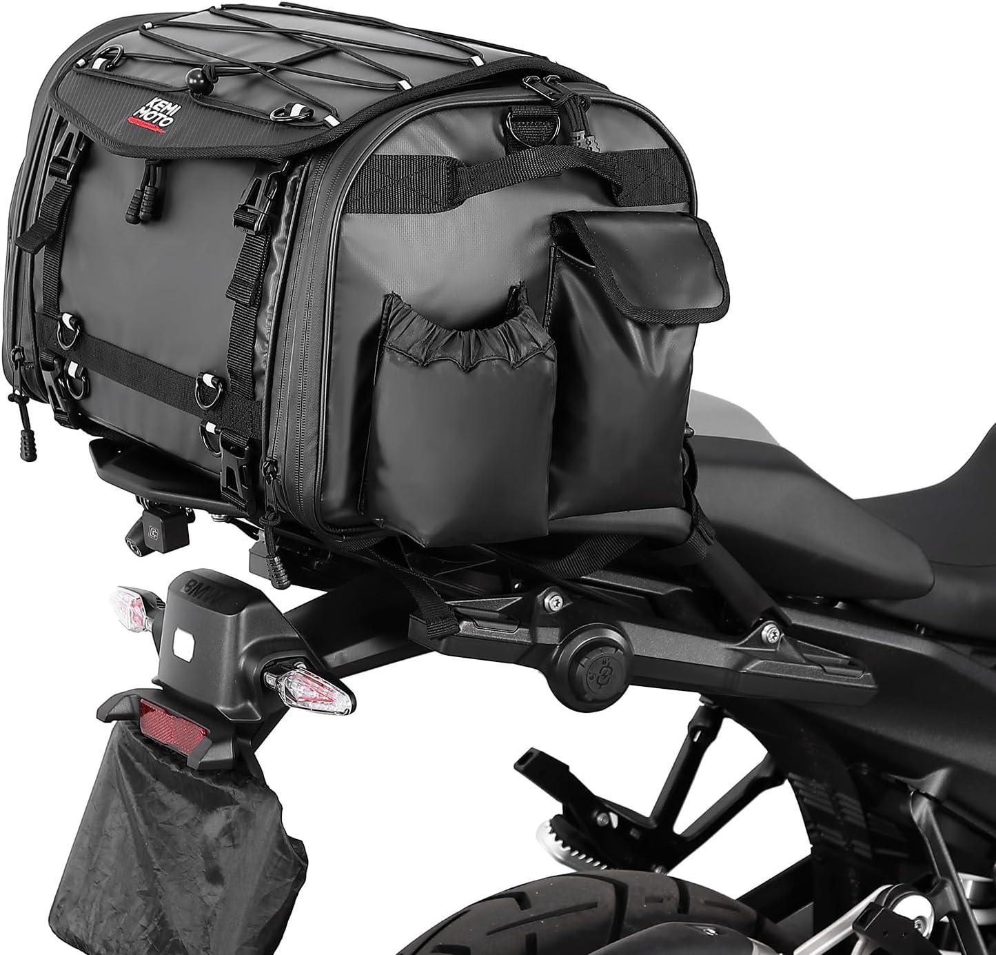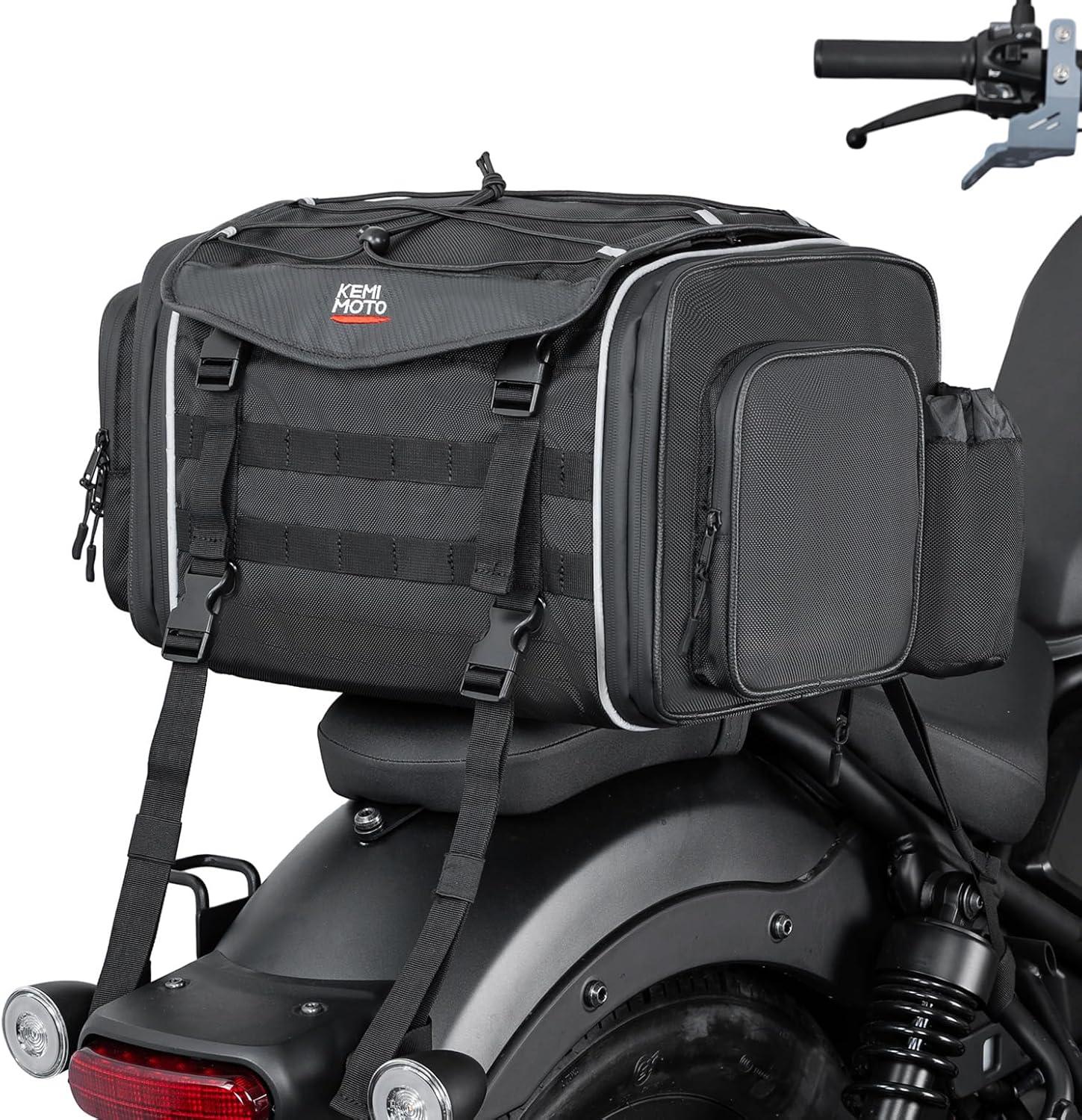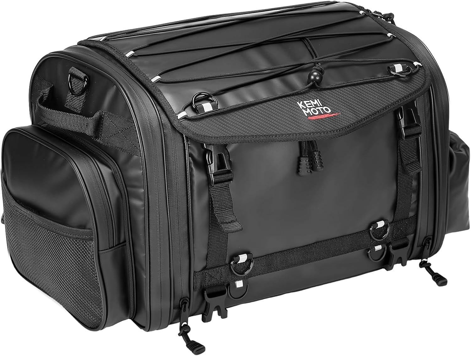 Enhanced Waterproofing: Our spacious motorcycle tail bag is crafted from PVC clip mesh material, ensuring exceptional water resistance, durability, and tear resistance. It effectively shields your belongings from water, dust, and dirt, even in the harshest weather conditions. To further safeguard your items, we include a waterproof rain cover, which can protect your bags in light rain and on dusty roads.