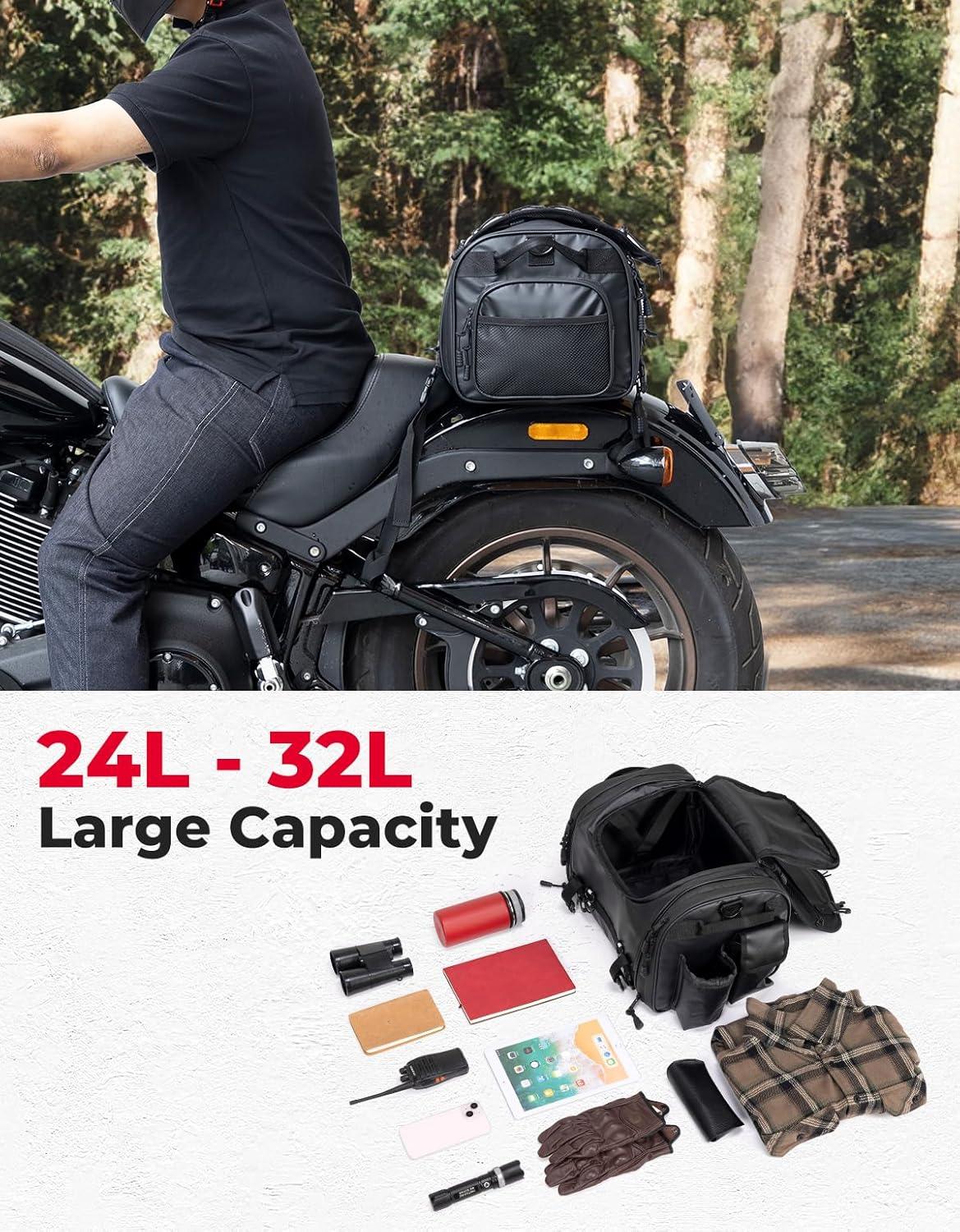 Versatile Use: With four straps and buckles, this motor pannier bag is not only easy to install but also compatible with various motorcycle types, such as large ADV touring bikes, medium street bikes, and urban retro cruisers. Installation methods vary depending on whether the motorcycle has a tail rack. Additionally, it includes a shoulder strap for convenient off-bike use, doubling as a backpack.