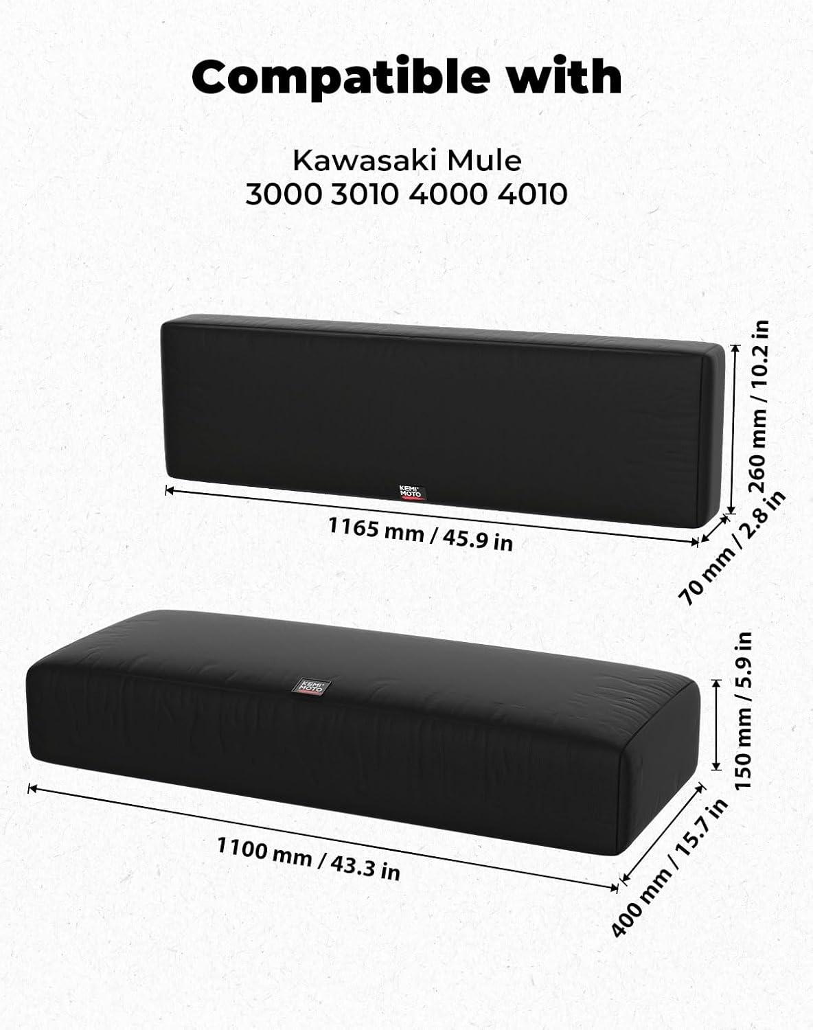 KEMIMOTO Mule Seat Cover Compatible with Kawasaki Mule 3000 3010 3020 4000 4010 2001-2023 2025 UTV Bench Seat Cover Set Anti-Scratch Full Protection Black(Black)
