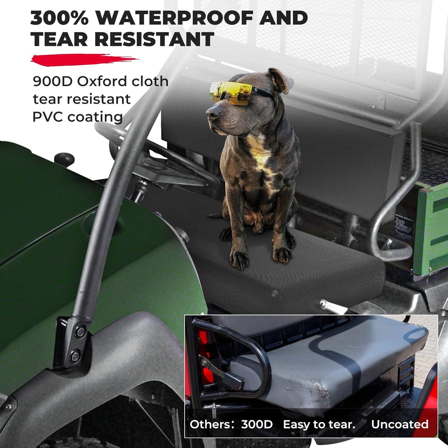 Material: KEMIMOTO seat covers are made of heavy-duty 900D fabric with a water-resistant backing and exterior coating for maximum weather and abrasion protection