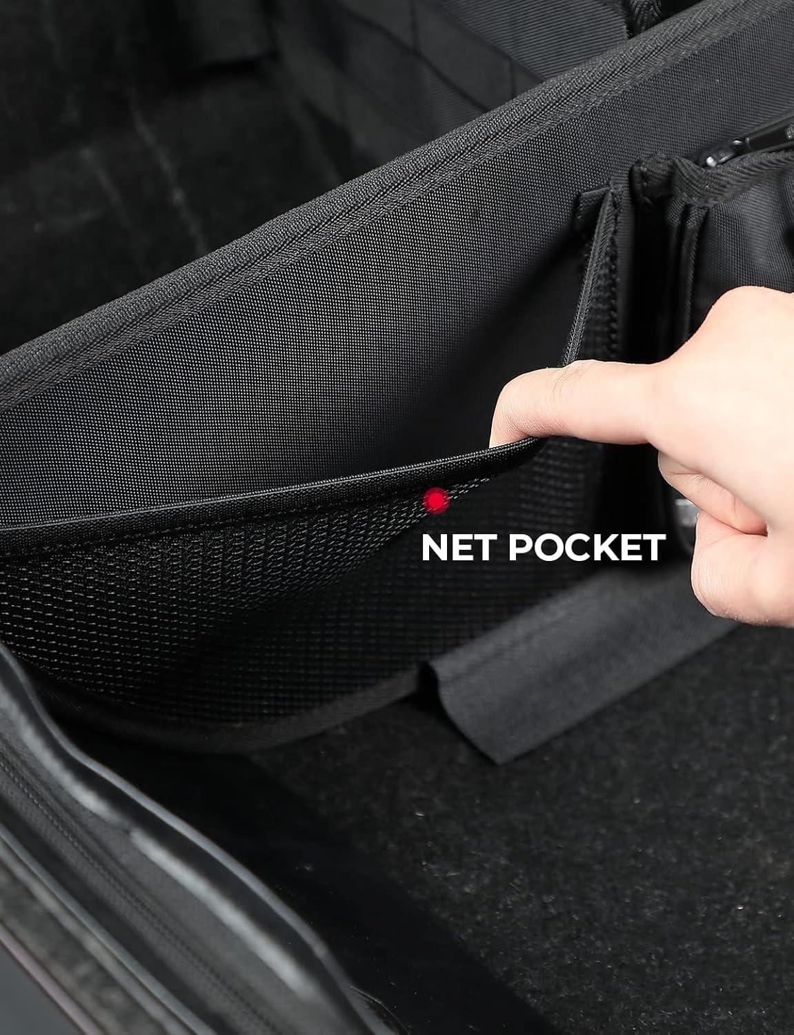 Adjustable Storage Organizer: The organizer for rear pack has two partitions, which separate the contents of the trunk and prevent the items from rolling around. With hook and loop fastener design, it can be adjusted and moved arbitrarily according to the space you need to obtain partition spaces of different sizes, to meet your needs for storing unusually large items