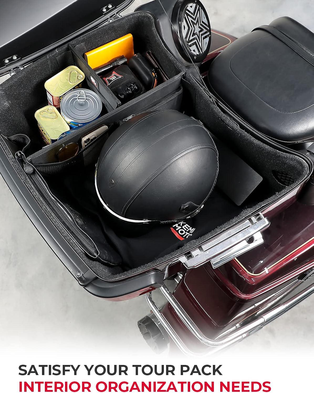 KEMIMOTO Organizer for Rear Pack Storage bag with Mesh Pocket and Dividers Compatible With Touring CVO Road Glide Ultra Limited Tri Glide 2014-2025