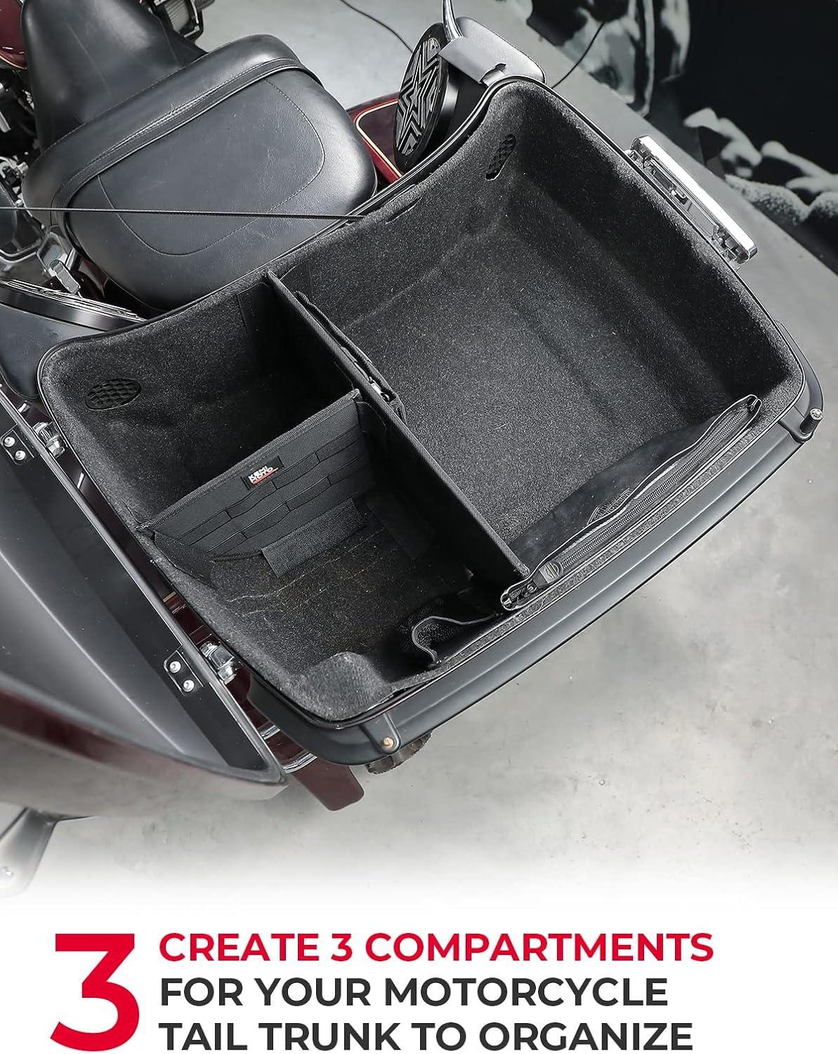 Wide Applicability: The organizer for rear pack is compatible with Road Glide Limited 2020-2023, Ultra Limited 2014-2023, CVO Road Glide Limited 2020-2023, Tri Glide Ultra 2014-2023, and CVO Tri Glide Ultra 2020-2024 models. NOTE: Not suitable for Chopper rear pack