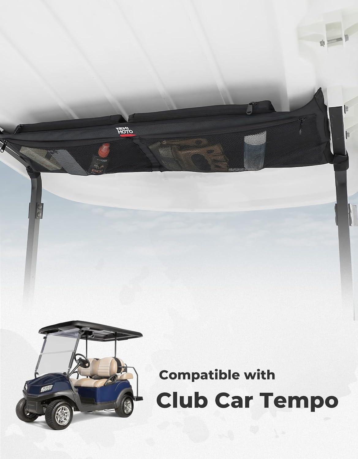 KEMIMOTO Overhead Storage Bag Compatible with Club Car Tempo(2007-2023), Golf Cart Organizer Ceiling Mesh Storage Bag Only Fit for Club Car Tempo(Hole Spacing 35in Horizontal and 3.9in Vertical)