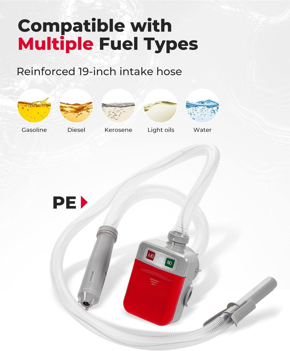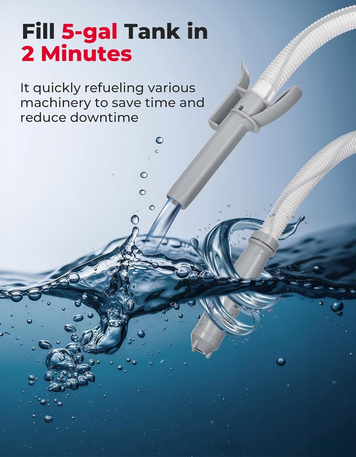 High-Efficiency Portable Fuel Transfer: Compact 1.43lb weight, this fuel transfer pump delivers up to a 2.4 GPM flow rate, fill up the 5-gallon tank in 2 minutes.