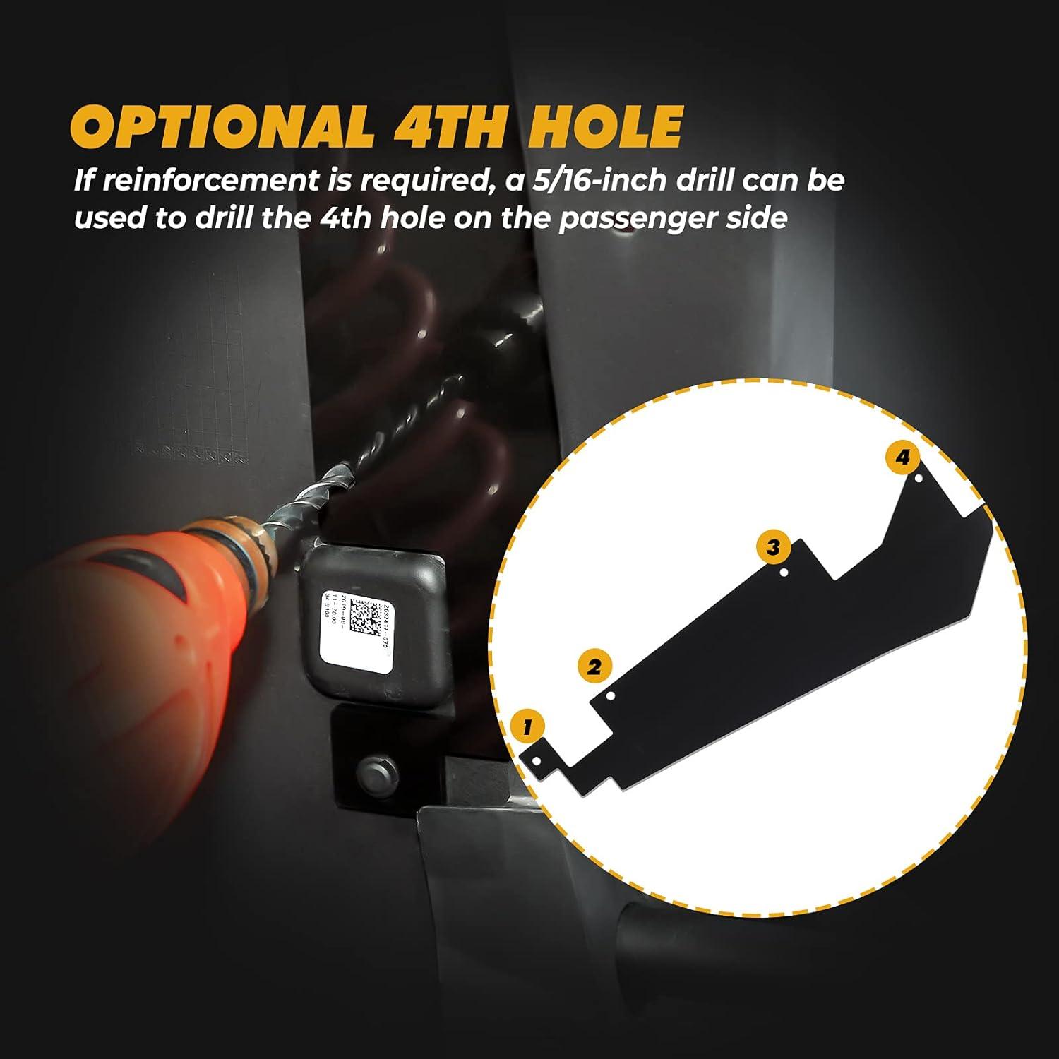 【FLEXIBLE DRILLING】RRO XP / PRO XP 4 fender flare has 3 holes on each side, and there is an optional 4th hole on the passenger side, which can be drilled with a 5/16 inch drill if necessary