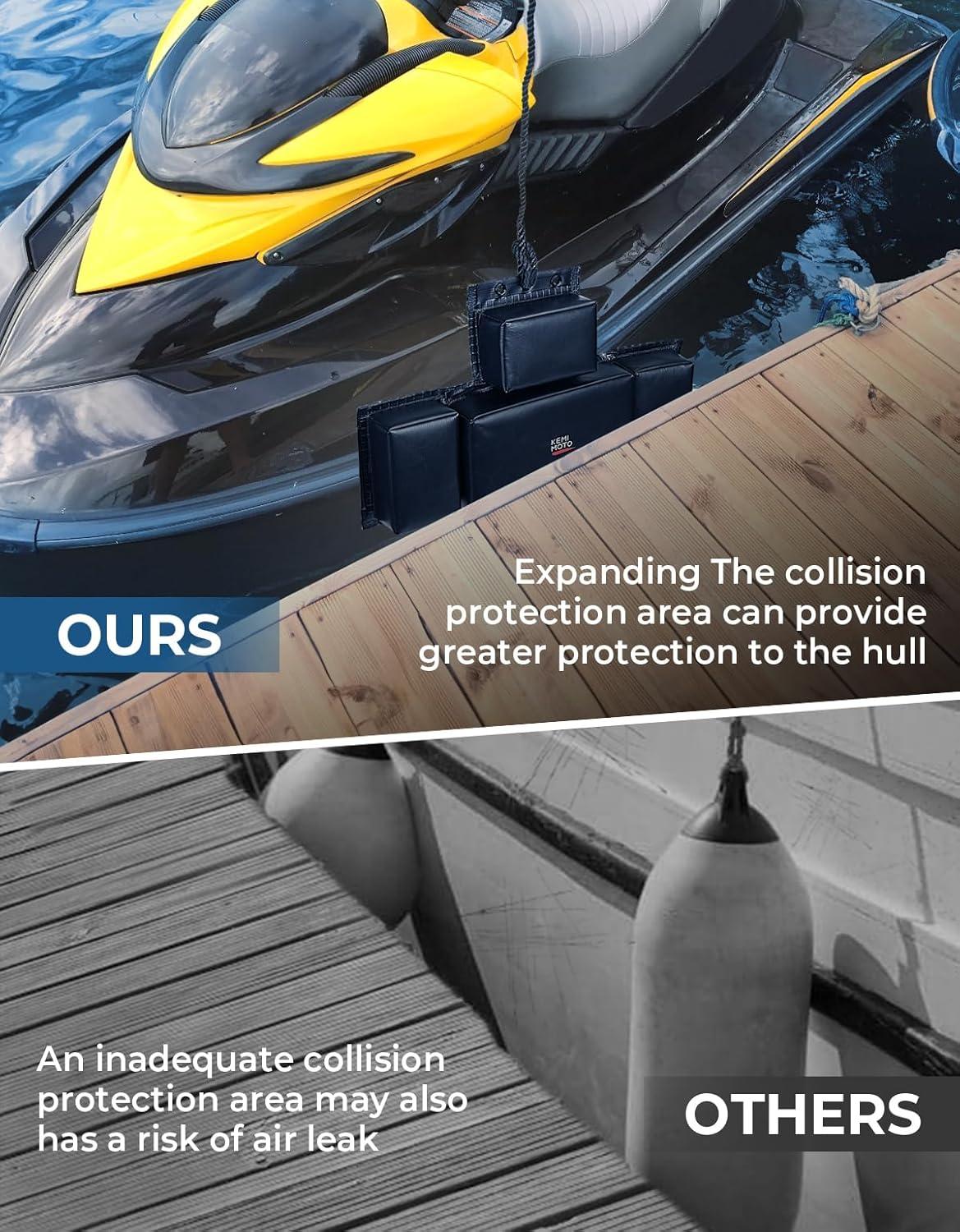 【Maximum Area Protection】Our PWC fender offers 19.7in of horizontal padding which is 5 times more than other PWC fender bumpers.Expanding The Collision Protection Area,the impact of a collision can be spread out over a larger area, reducing the risk of damage to the hull.