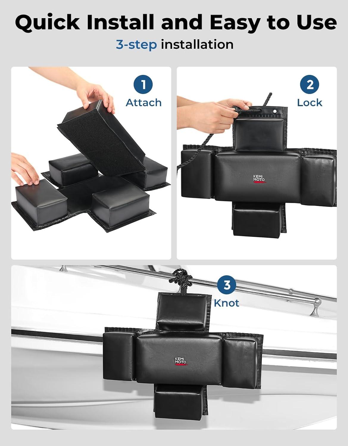 【Easy to Storage & Wide Applications】When folded,jet ski bumper measured only 12.2in x 7.08in x 7.08in and easily storage in front of your PWC. Expanding PWC boat bumpers are suitable for many scenes, they can be installed on the dock for boats to dock, compatible with various types of motorboats or under 20 feet sizes small boats.