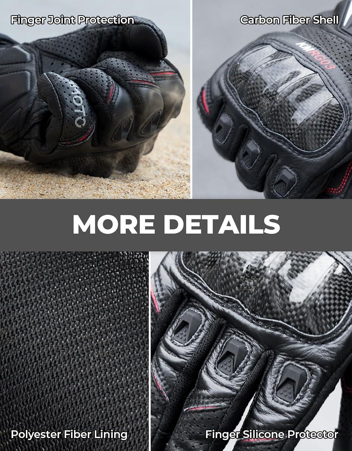 Breathable and Comfortable: The perforated design of the motorcycle gloves facilitates airflow between the interior and exterior, promoting heat dissipation from the hands and preventing overheating and perspiration. This feature significantly enhances wearer comfort, particularly during prolonged use or in high-temperature conditions, while also keeping your hands warm in cooler weather