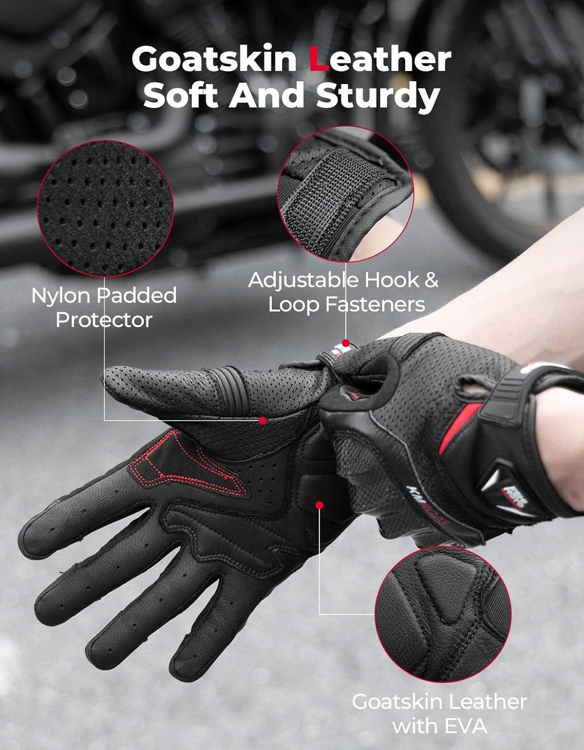 Long-Lasting, Anti-Slip Material: Made from premium sheepskin leather, motorbike gloves offer high durability and wear resistance for long-term use, even in cold weather. Their exceptional softness and flexibility enhance comfort, while the natural texture ensures an enhanced grasp during winter rides