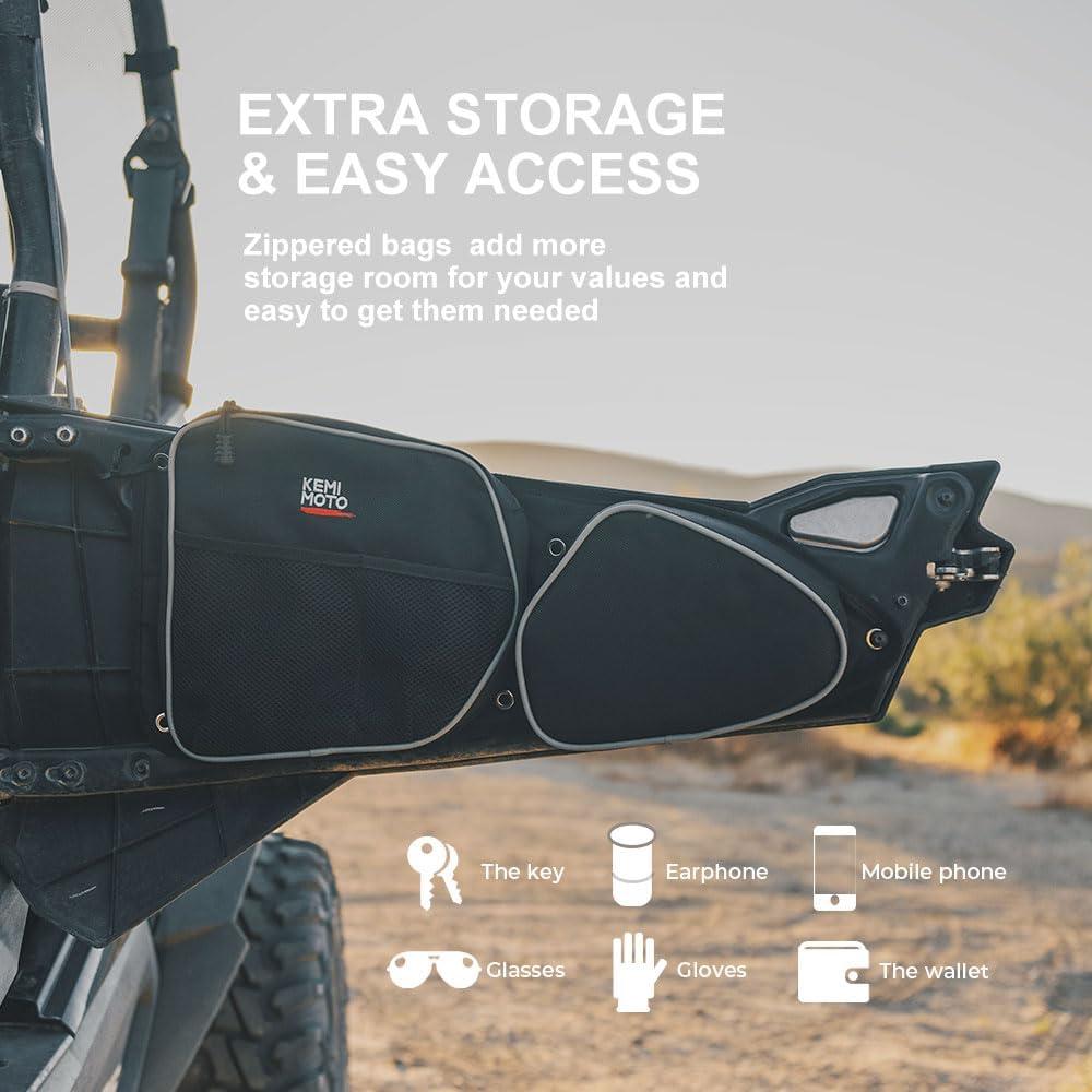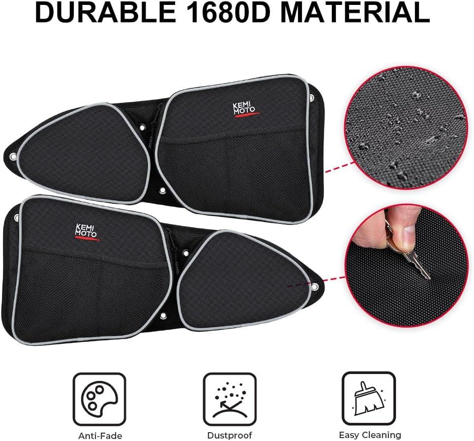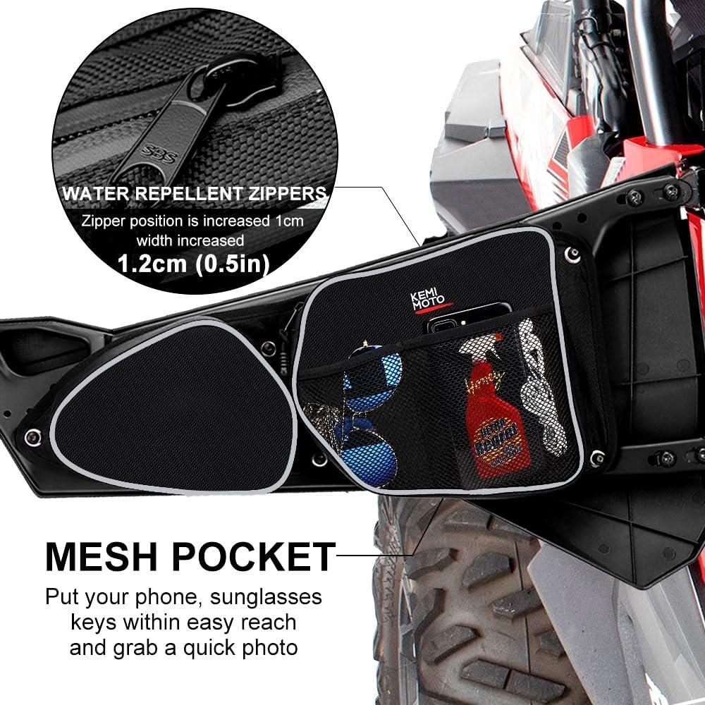 Material: We use the PVC materials to make the door bag for rzr and the water repellent zippers sturdy enough. These kemimot door bags are water-resistant