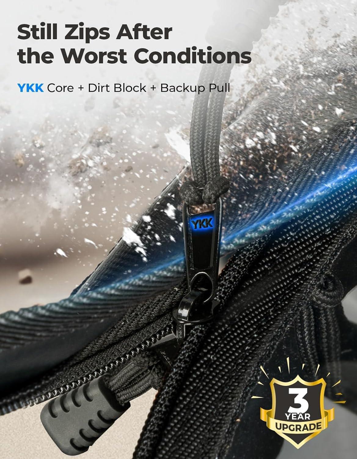 YKK Zippers Built for Grit: No more struggling with stubborn or muddy zippers. Our soft upper doors feature upgraded YKK tracks that glide smoothly, even when iced over. Built for ranchers who can't wait on the weather, whether it's a muddy trail or a winter hunt. Zip it and forget it