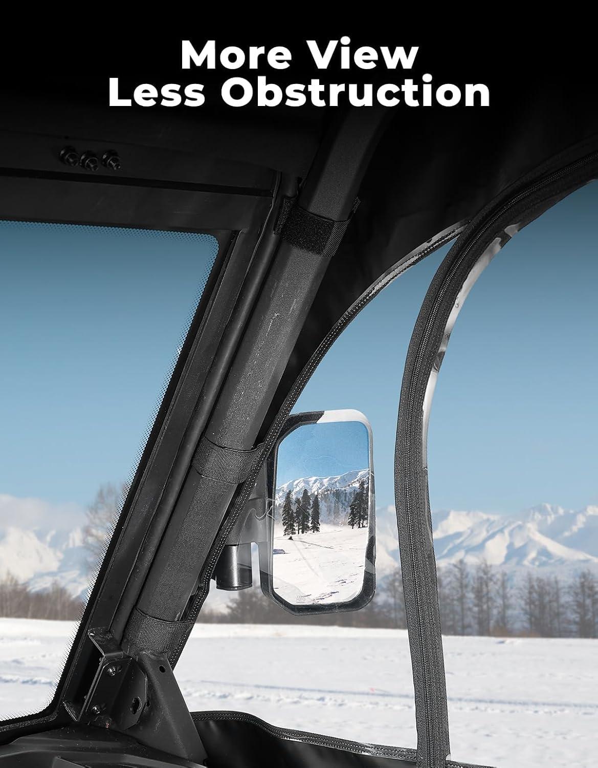 Mirror-Ready, Windshield-Tight: Need to check your flank or plow through drifts? Our soft upper doors fit like a glove over mirrors and windshields—no blind spots, see everything, stay shielded