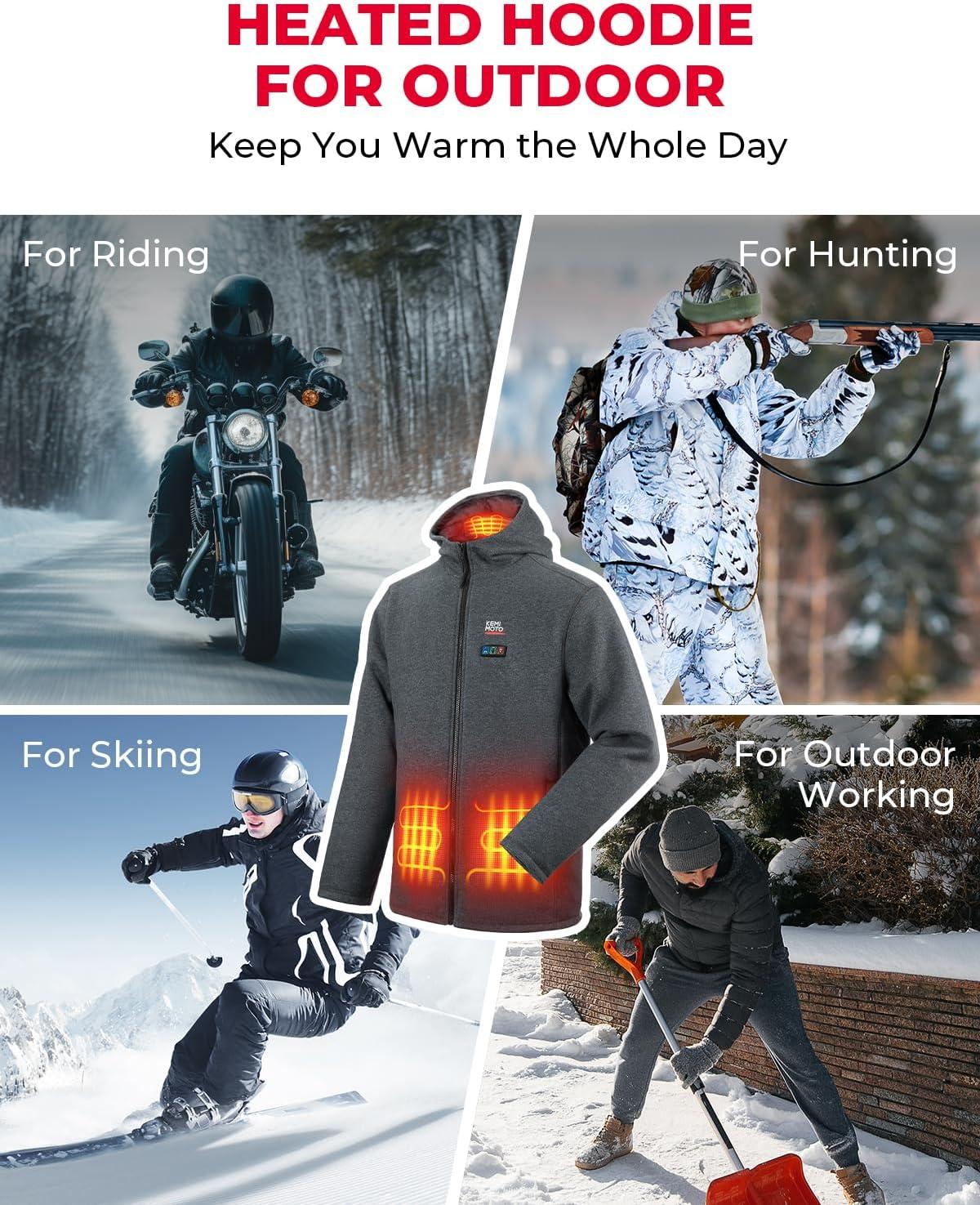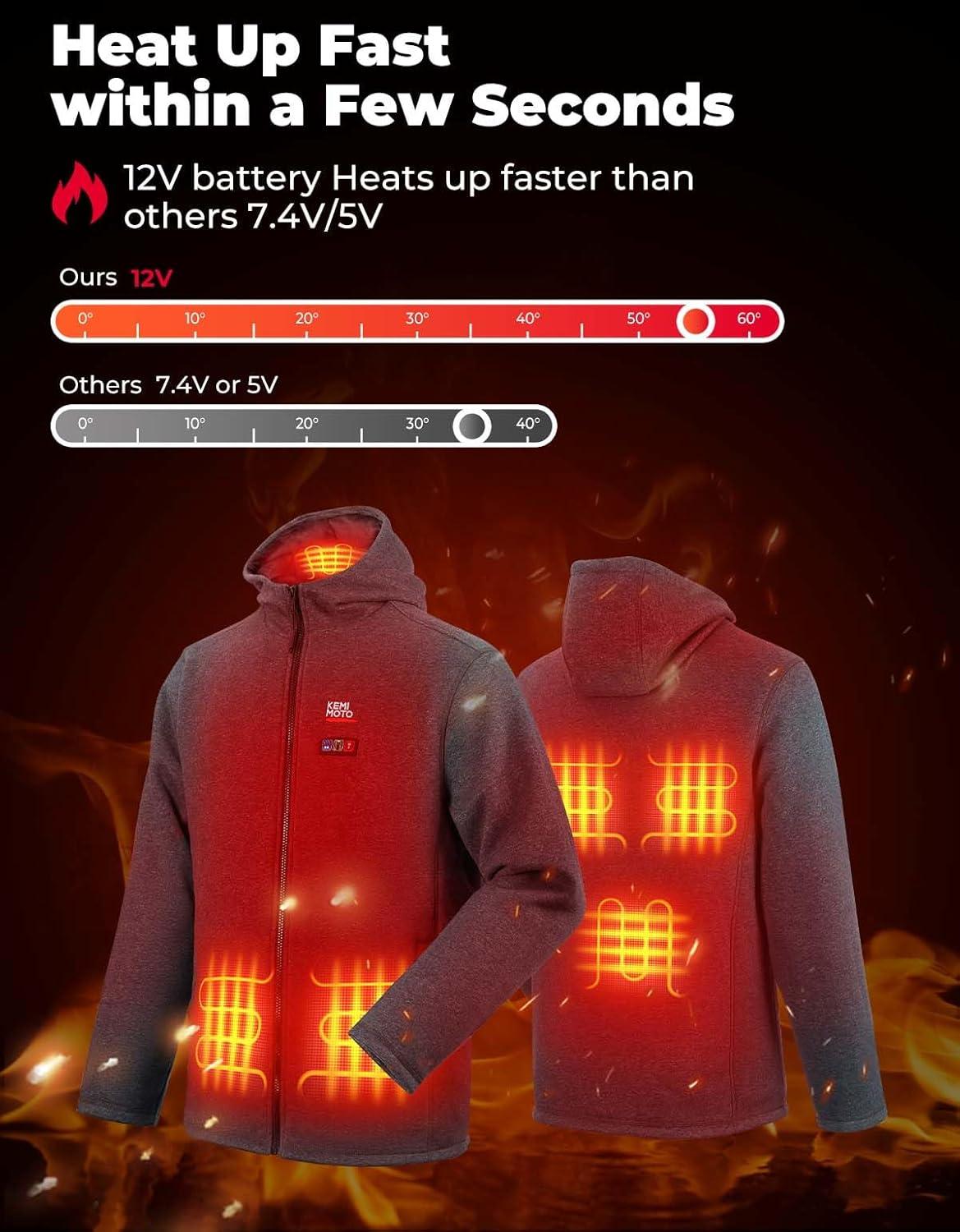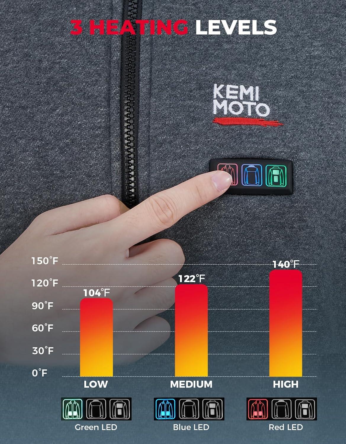 imageKEMIMOTO Soft Fleece Heated Hoodie for Men and Women Unisex Heated Sweatshirt with 12V 1500020000mAh Battery