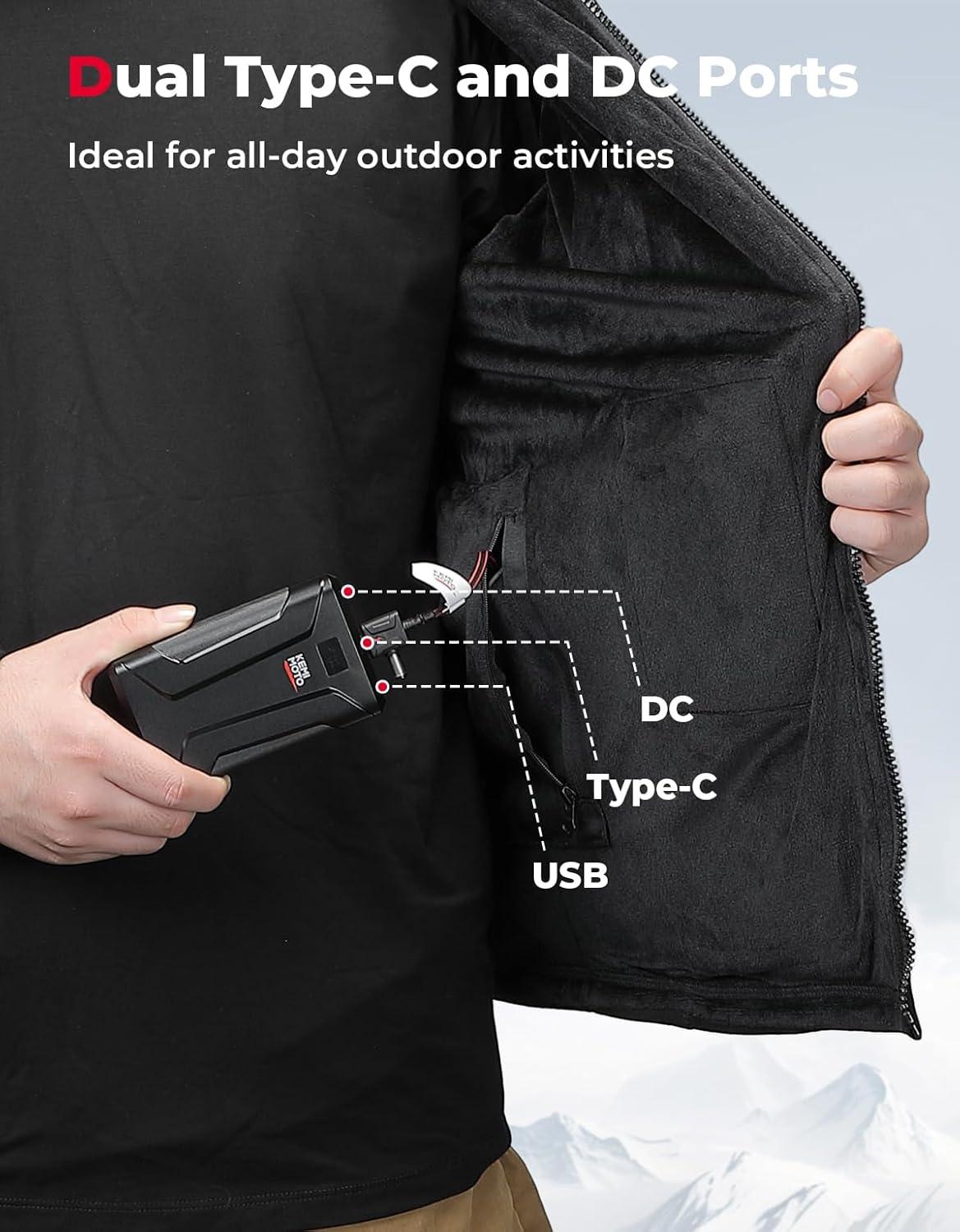 Personalized Heated Zones: This heated sweater features advanced carbon fiber heating elements across three core areas: the back, abdomen, and neck. Experience targeted warmth in key areas, ensuring all-around warmth and comfort