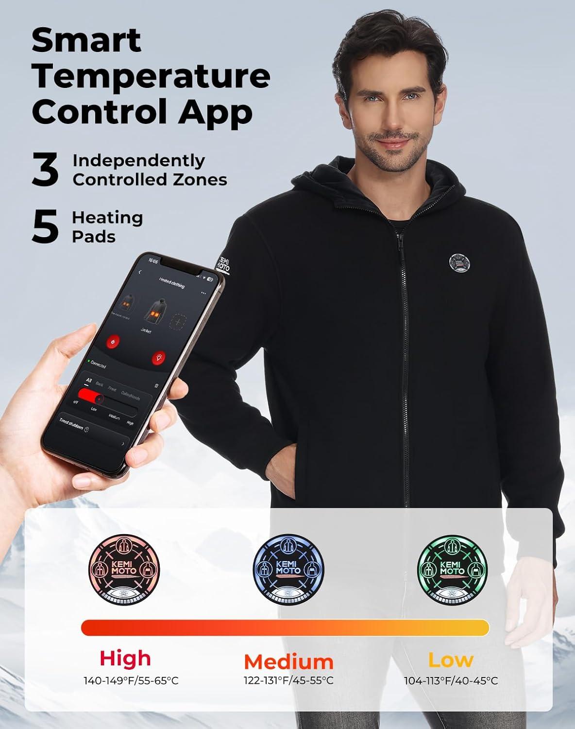Fast and Long-Lasting Warmth: The unisex heated hoodie features a 12V 15000/20000mAh battery heating up in seconds, up to 10 hours of working time on low heating, 4-6hrs on medium, 2-4hrs on high. And rapid recharge in just 3-4 hours