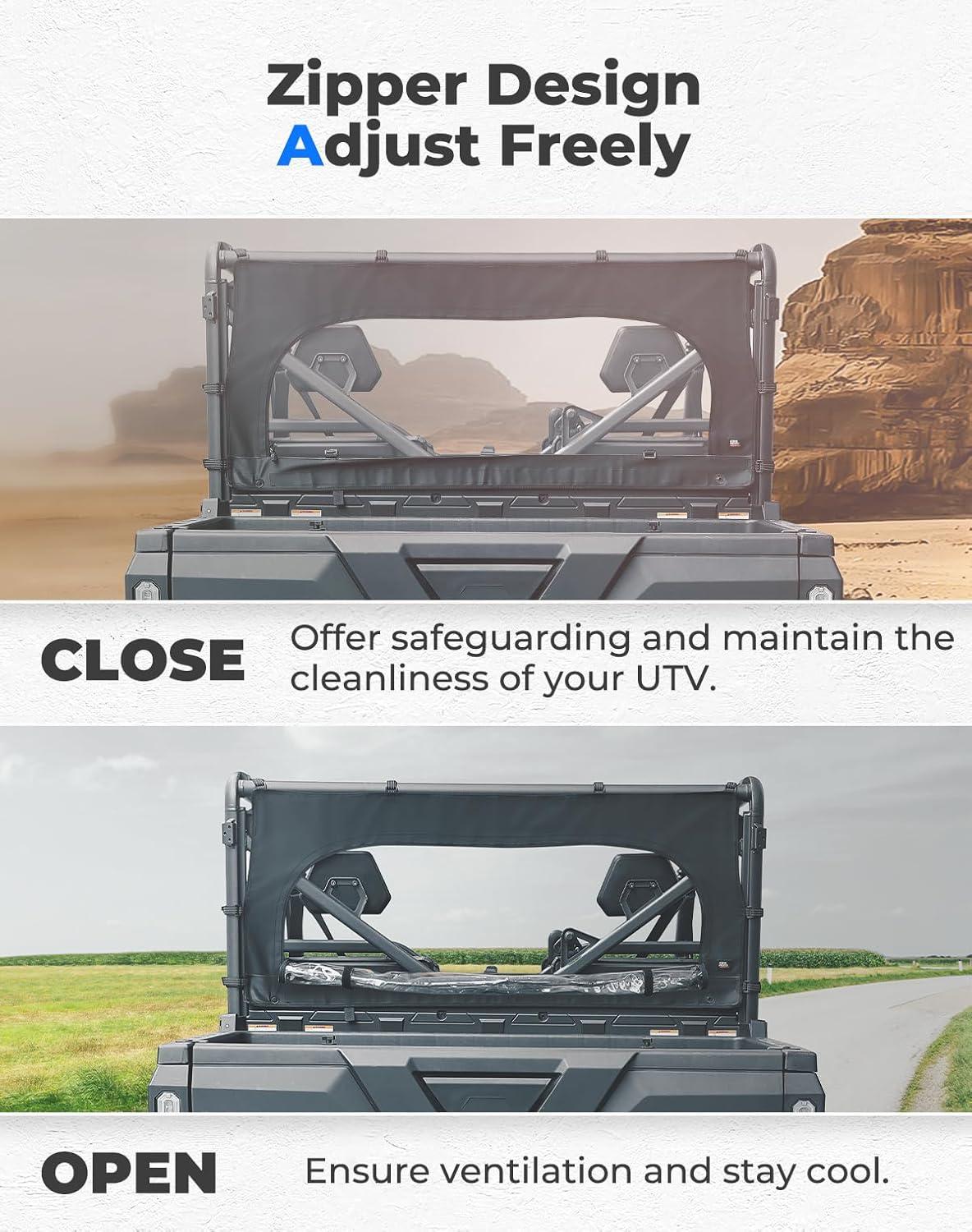 Perfect Protection: Constructed from composite Oxford fabric, KEMIMOTO soft back windshield is waterproof and resistant to tearing, making it robust enough to withstand adverse weather conditions and rugged terrains. Its UV-resistant properties also help protect your UTV’s interior components from sun damage, prolonging their functionality