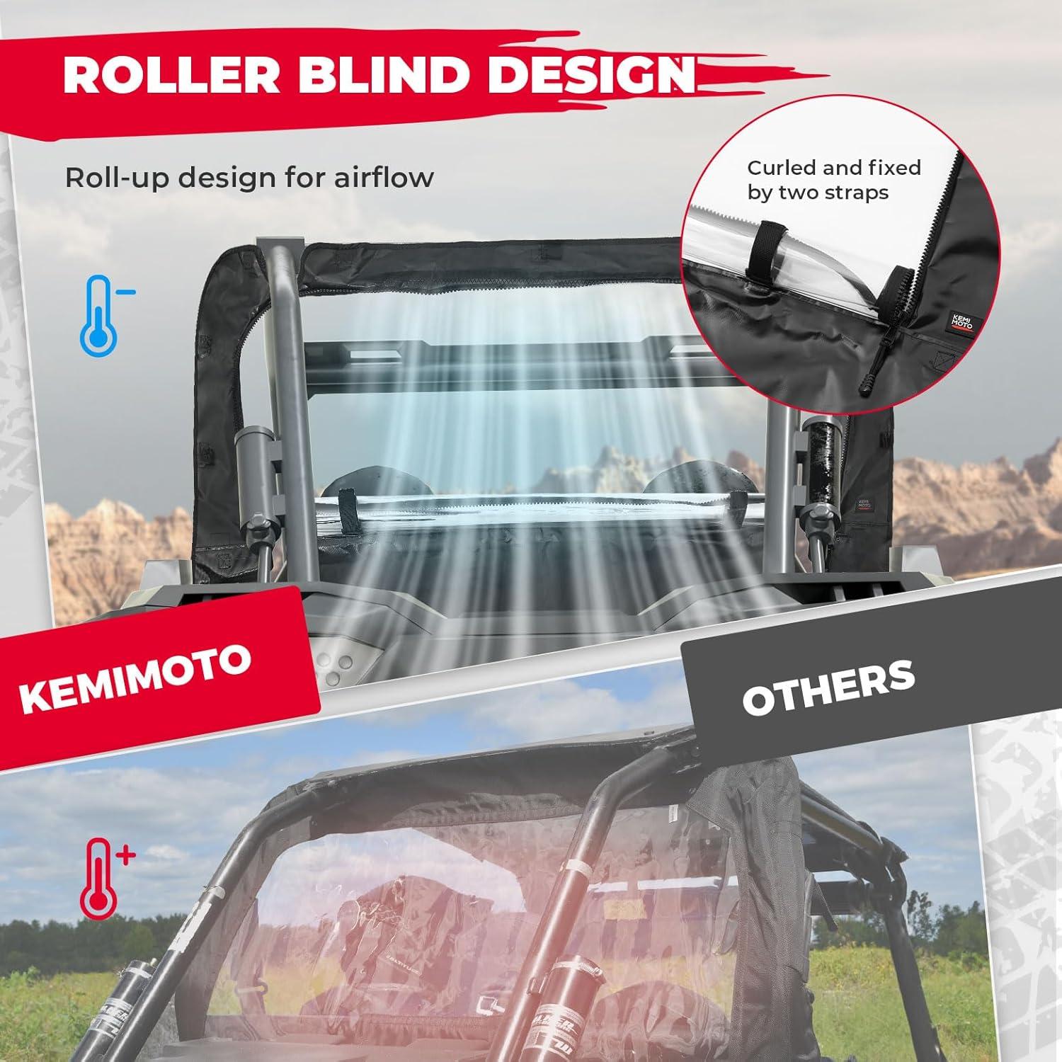 KEMIMOTO Soft Rear Windshield Compatible with Polaris RZR XP 1000, UTV Rear Clear Full Windshield Durable and Portable Compatible with 2014+ Polaris RZR XP/XP 4 1000, 2016+ Polaris RZR XP/XP 4 Turbo