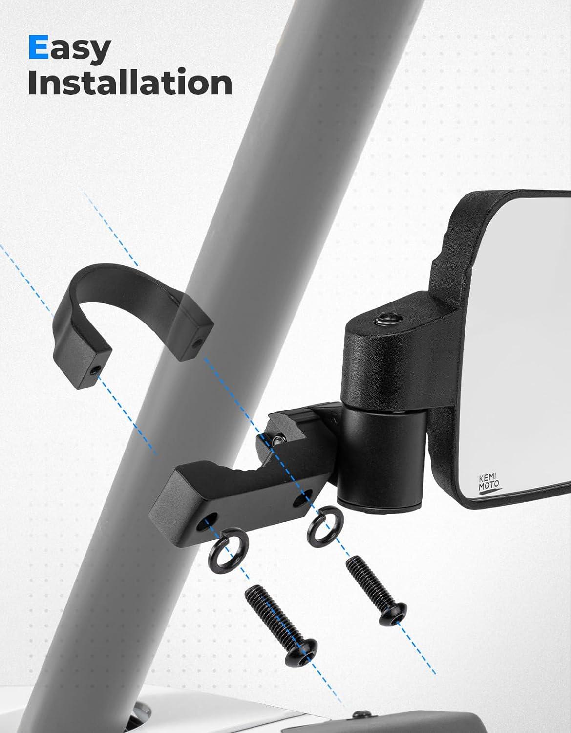 Spring Back Mirrors – Fit 1.65″-2″ Roll Bar: These mirrors fit most UTVs, compatible with Polaris RZR, Can-Am X3, Pioneer, Talon, Mule, and CFMOTO. But it does not fit Pro-fit models or outside 1.65-2 inches, and it is not compatible with Ranger, Defender, Pioneer 500/520/700, and ZForce 800/500