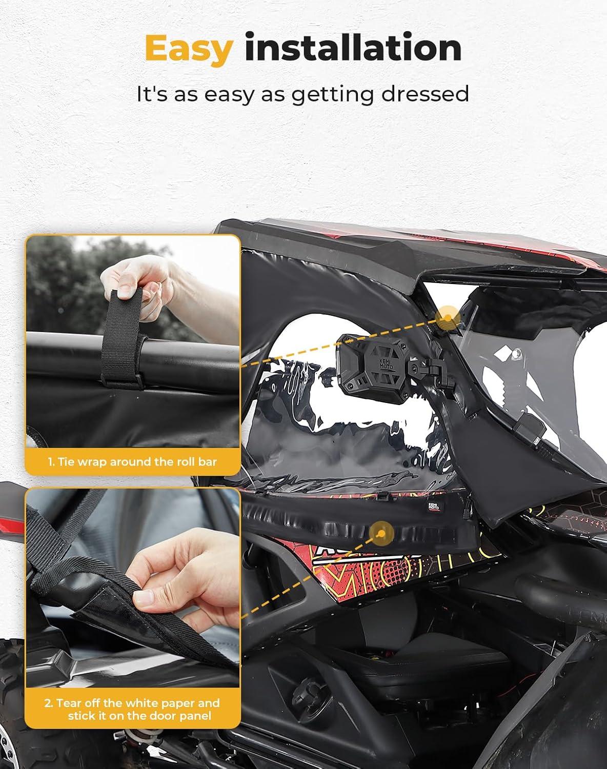 Mirror-Ready, Windshield-Tight: Need to check your flank or plow through drifts? Our soft upper doors fit like a glove over mirrors and windshields—no blind spots, see everything, stay shielded