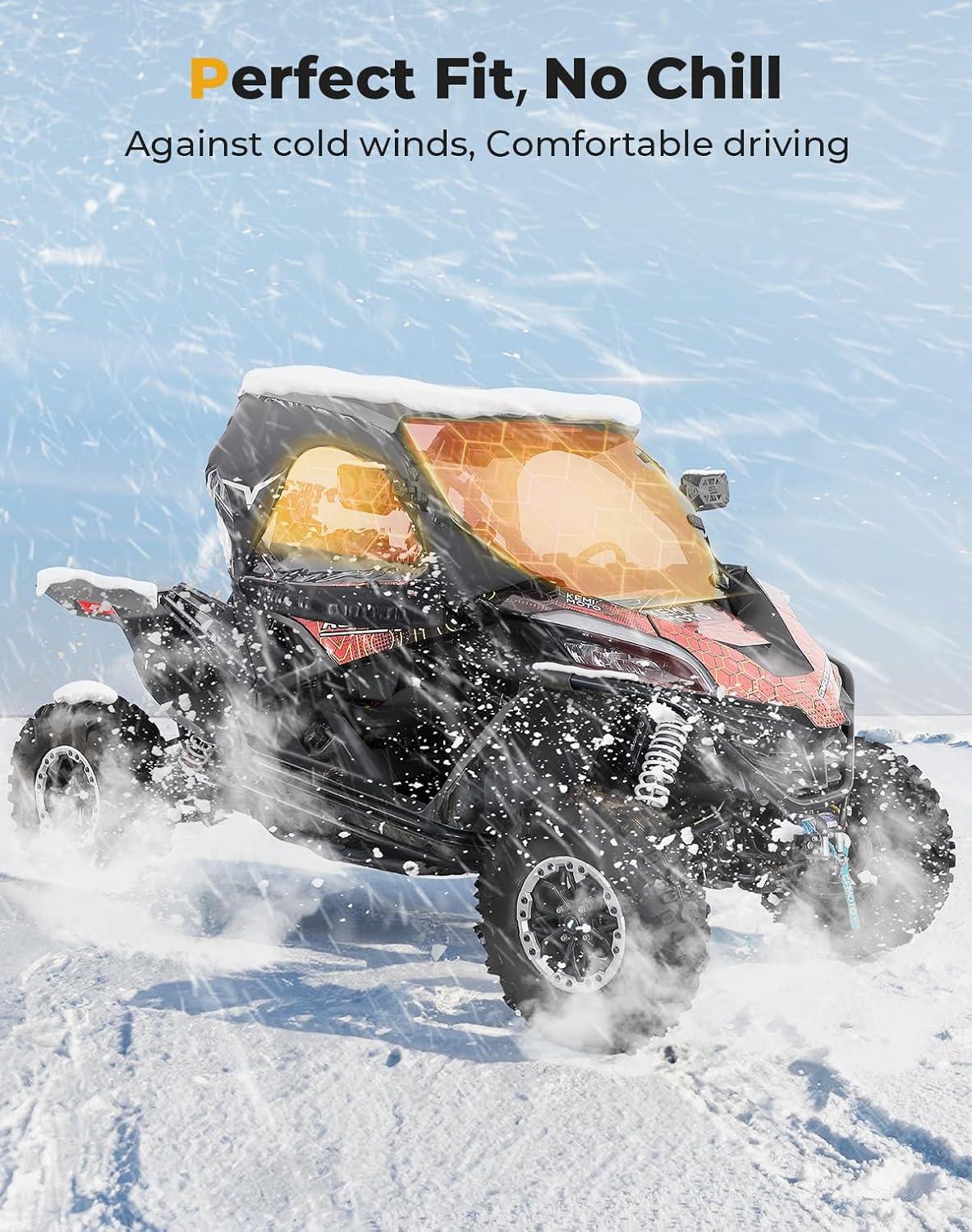 Stay Toasty in Your Cab: -20°F wind howling? KEMIMOTO cab enclosure delivers 98% sealing to lock out drafts, keeping your ride +18°F warmer. Under 10 CMF airflow means no icy surprises. Ranch, plow, or trail—stay warm longer