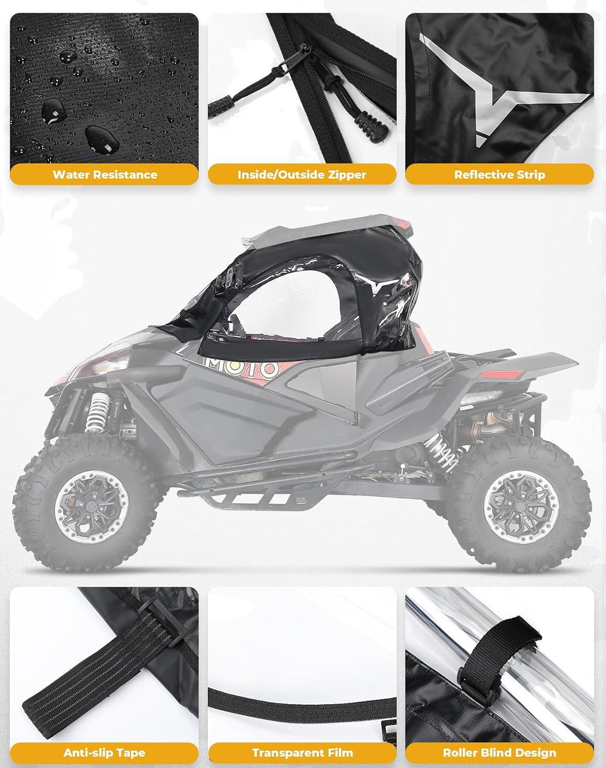 KEMIMOTO Soft Upper Doors YKK Zippers, Compatible with CFMOTO ZForce 950 HO 22-24 / Sport 20-22 (Not 23+ Sport,Trail), Fit with Side Mirrors and Windshields Soft Cab Enclosures 2 Upper Windows