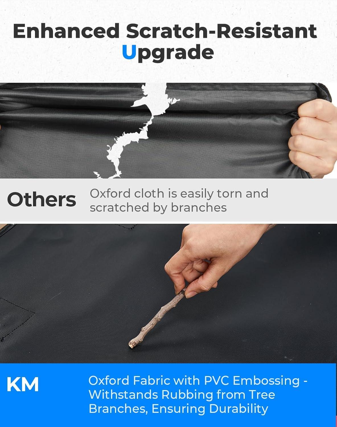 100% Waterproof Material: Constructed from PVC-coated Oxford fabric, the KEMIMOTO canvas top is impervious to water. Its superior durability resists abrasions and tears, while also providing excellent protection against UV preventing discoloration