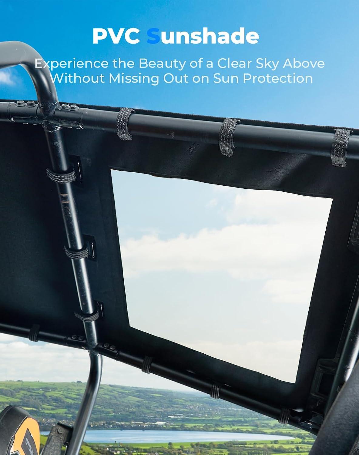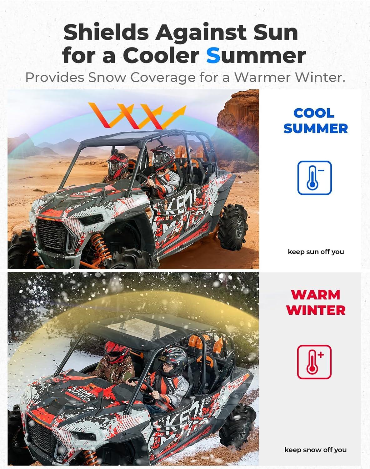 Effective Interior Protection: Tailored to fit seamlessly onto the OEM roll bar frame, the KEMIMOTO soft top offers comprehensive shade and safeguards the vehicle's interior from leaves, debris, as well as weather elements like sun and rain