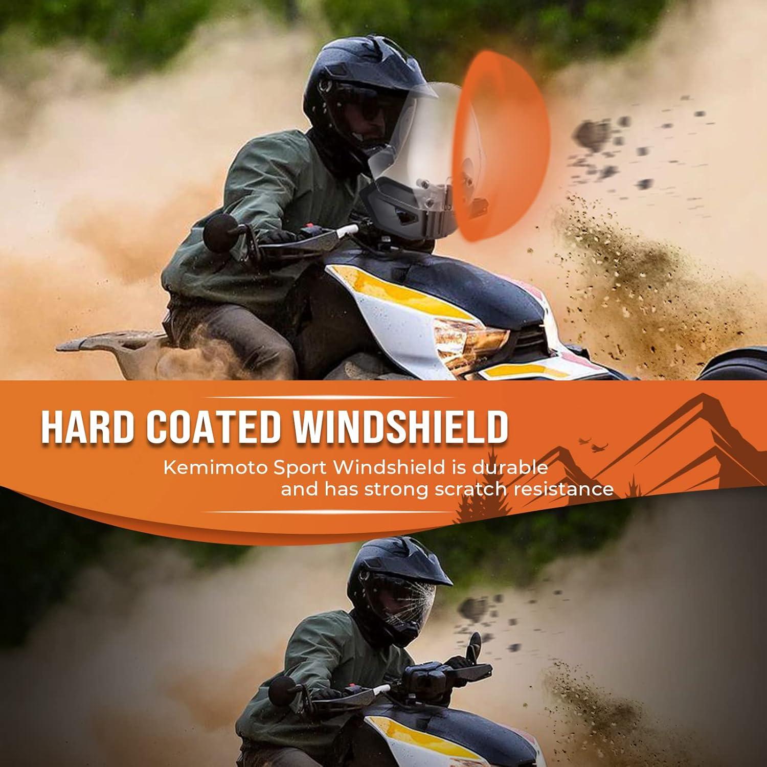 Material & Impact Resistance: Sport windshield is made of material on the windshield. Optical-grade polycarbonate material offers maximum scratch resistance and impact resistance to protect your windshield from scratching by branches, stones, or sharp objects. KEMIMOTO utv front windscreen is light and durable which is not easy to break