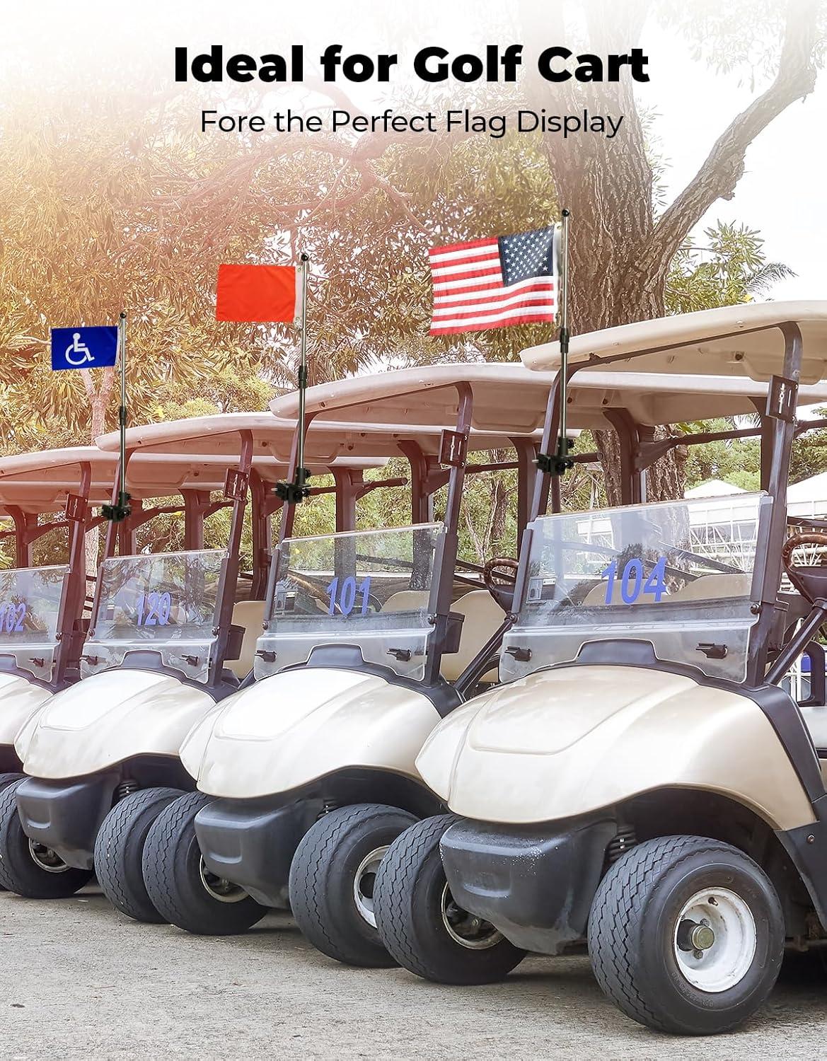 SHOW OFF YOUR PRIDE: Versatile for golf carts and boat. Proudly display your own flag on Independence Day/Memorial Day. Package includes a 2.5ft telescoping flagpole, 2 aircraft-grade steel cables, heavy-duty flagpole mounting bracket, 2 square adapters, and 2 round adapters. A great pontoon boat accessories gift for boat