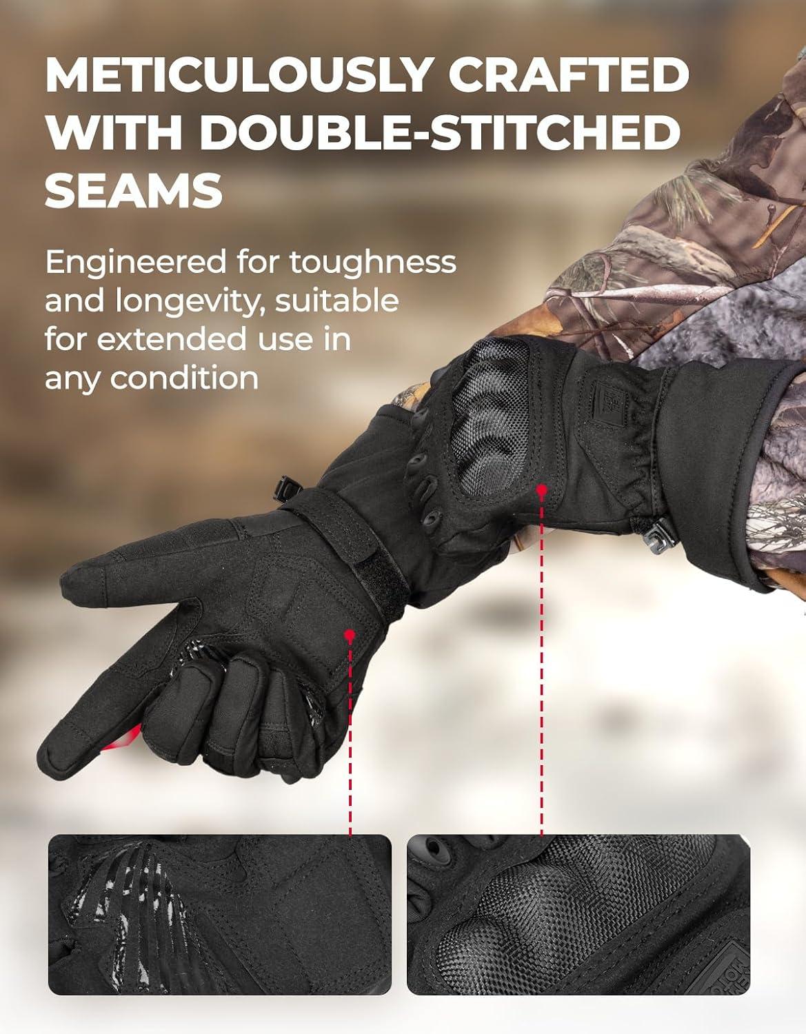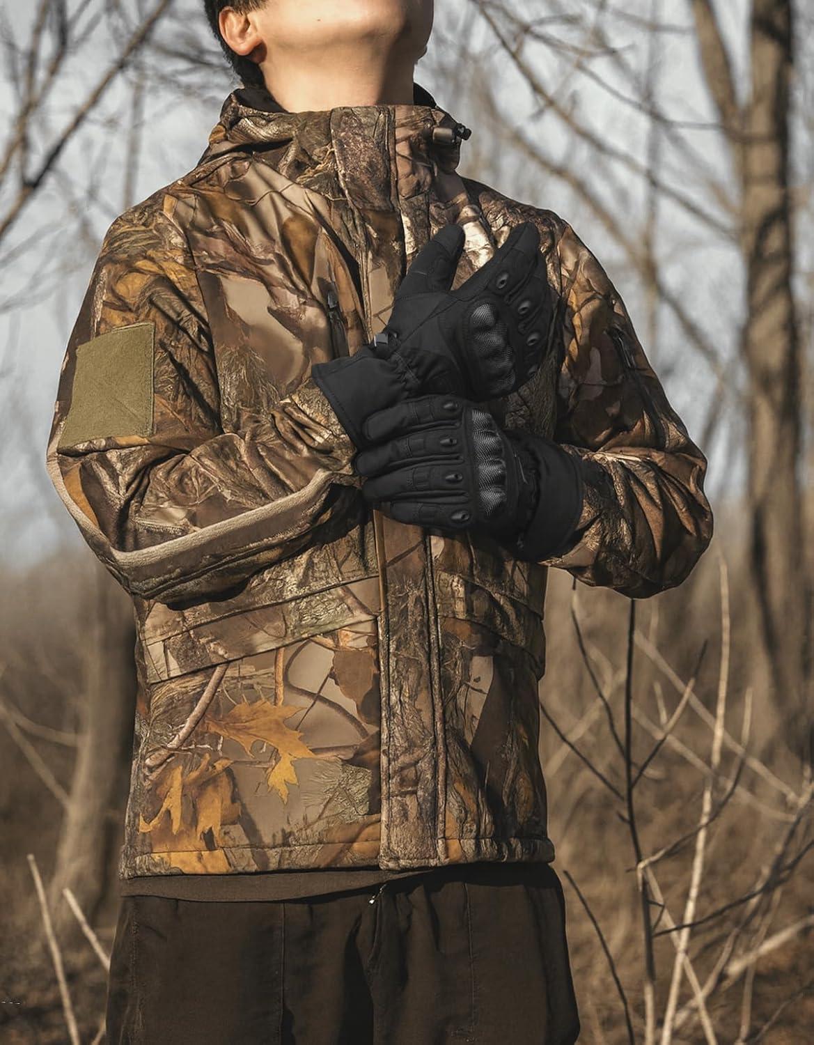 Warm and Comfortable: Our tactical gloves, designed as cold weather gloves, feature four layers of high-performance materials, ensuring your hands stay warm in cold environments. The outer layer is made of breathable polyester and microfiber, with 5mm high-efficiency cotton filling, a waterproof membrane to keep dry, and a soft velvet lining for skin-friendly comfort