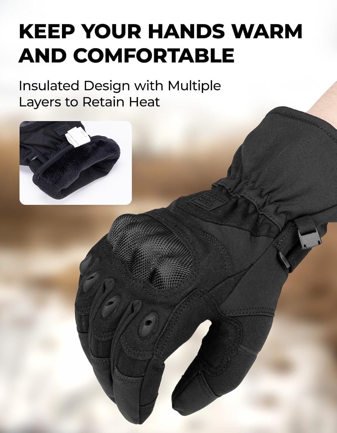 Three-Finger Touchscreen Capability: The thumb, index finger, and middle finger are all touchscreen compatible. Even in the cold winter, these winter motorcycle gloves allow you to easily answer calls, check messages, or navigate without taking off the gloves, making your outdoor activities more convenient.