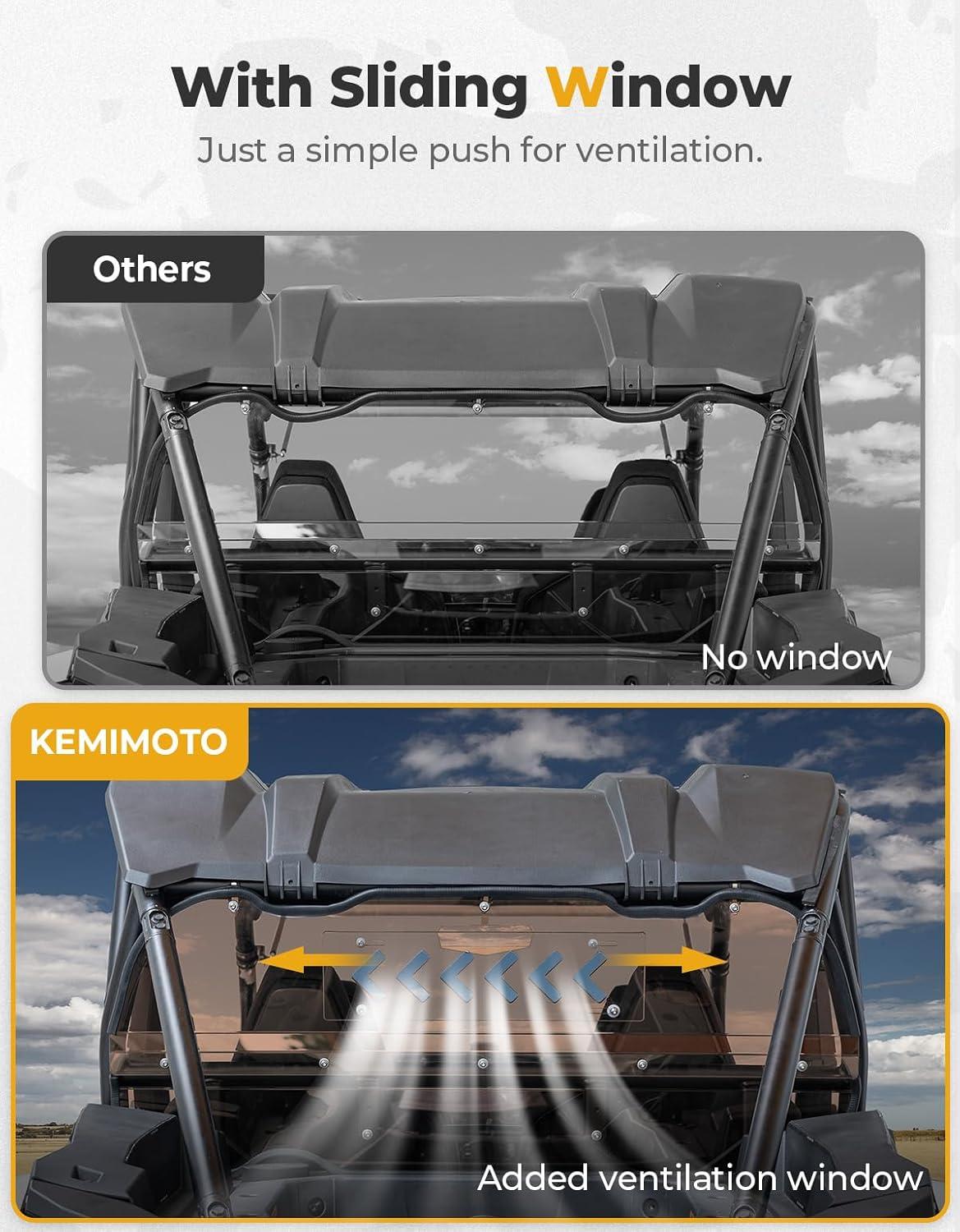 Sliding Vent Design: Featuring a sliding vent, this KEMIMOTO rear windshield offers the best of both half and full windshields. Open it for ventilation when needed, and close it for full protection. This versatile design ensures optimal airflow and protection for all-season travel