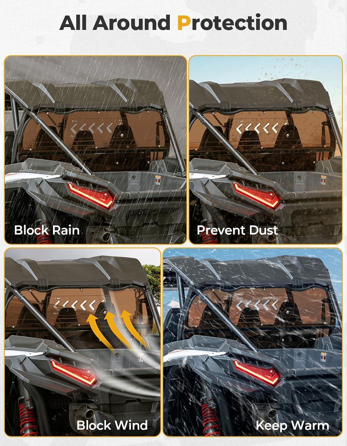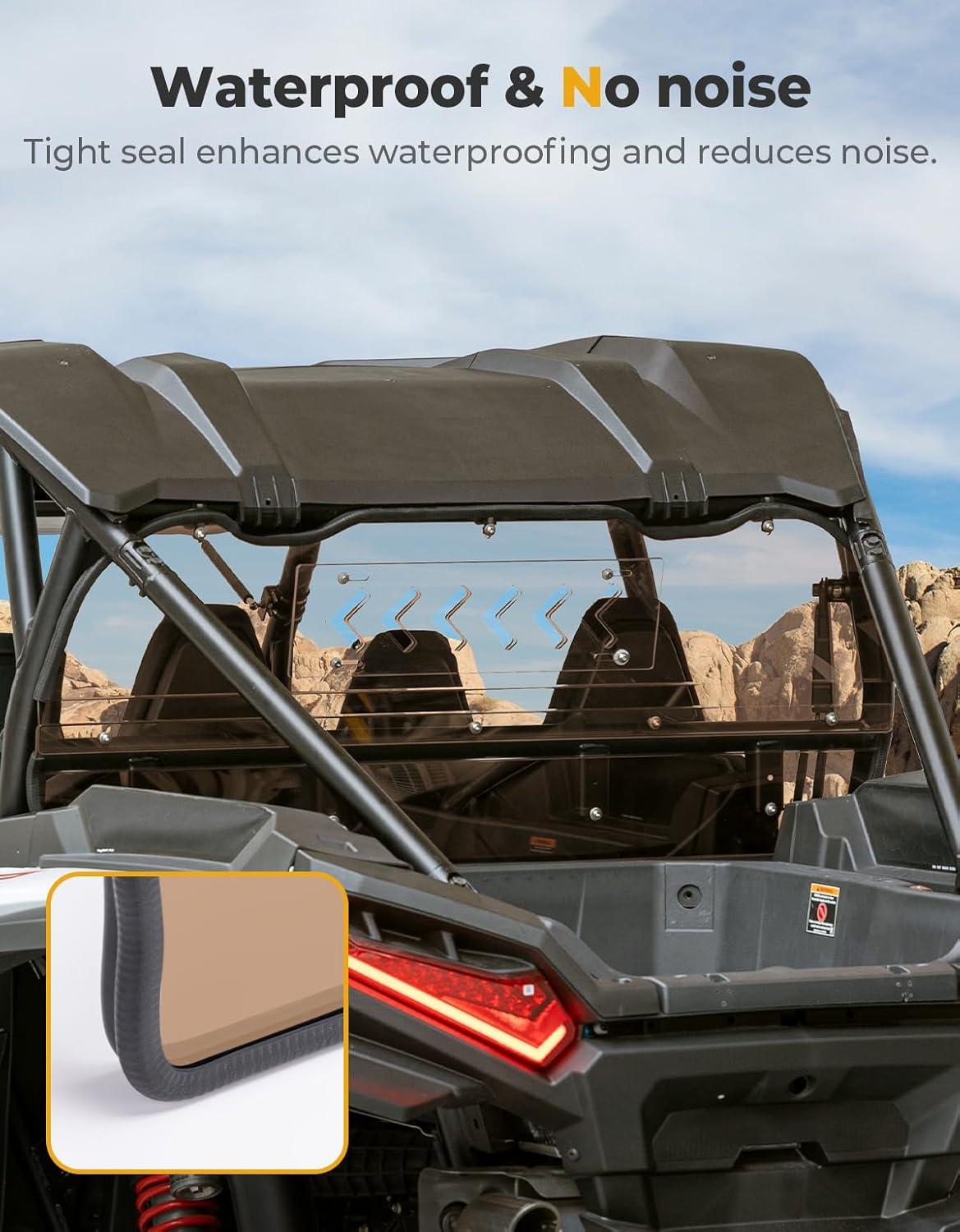 Perfect Fit: The KEMIMOTO UTV Tinted rear windshield is precisely designed for the model which is compatible with 2024 2025 Polaris RZR XP 1000 series Ultimate/Sport/Premium models (both 2-seater and 4-seater). Enjoy a seamless fit with enhanced cold-weather protection, making it the ideal choice for winter riding. However, it's not compatible with stock speakers