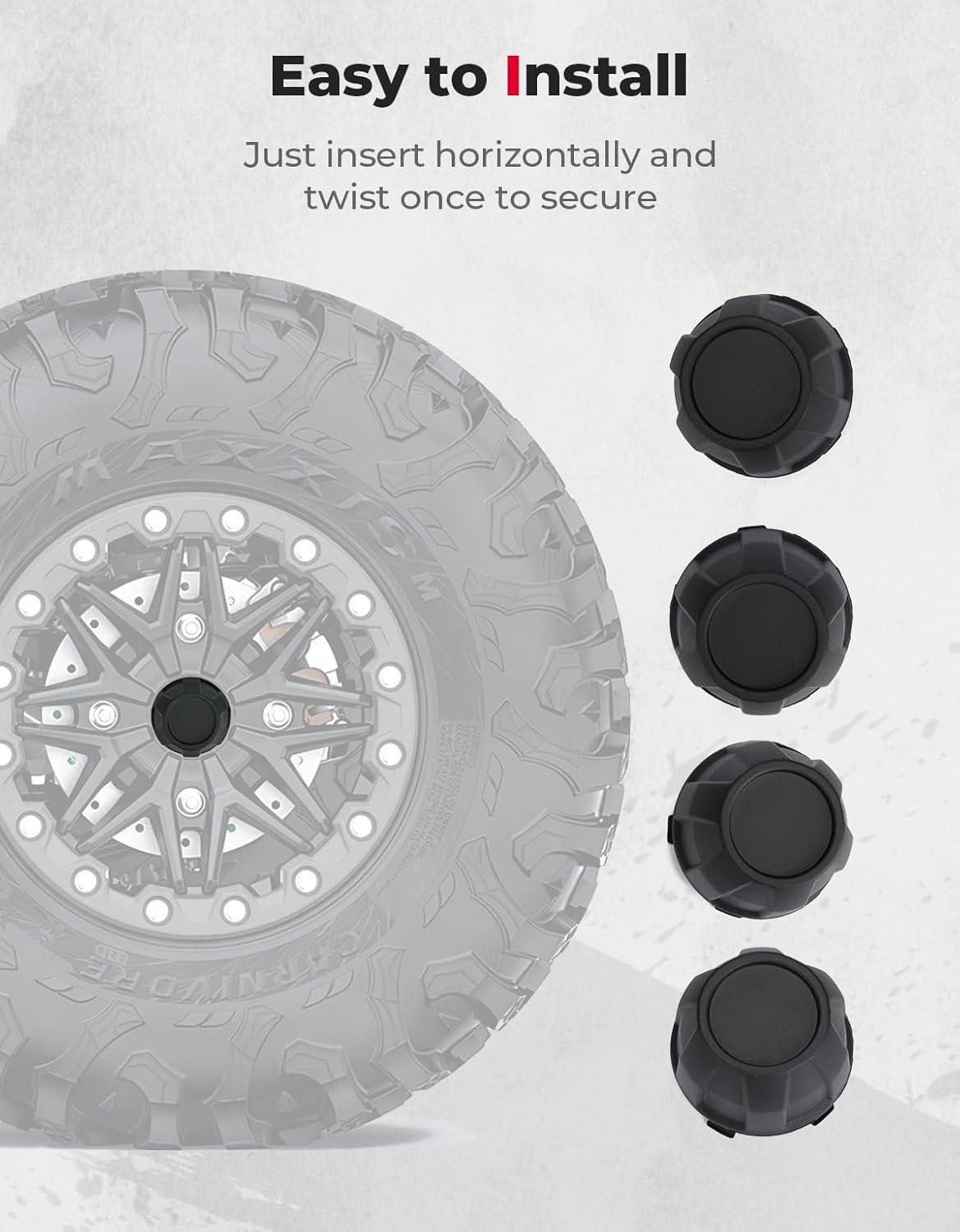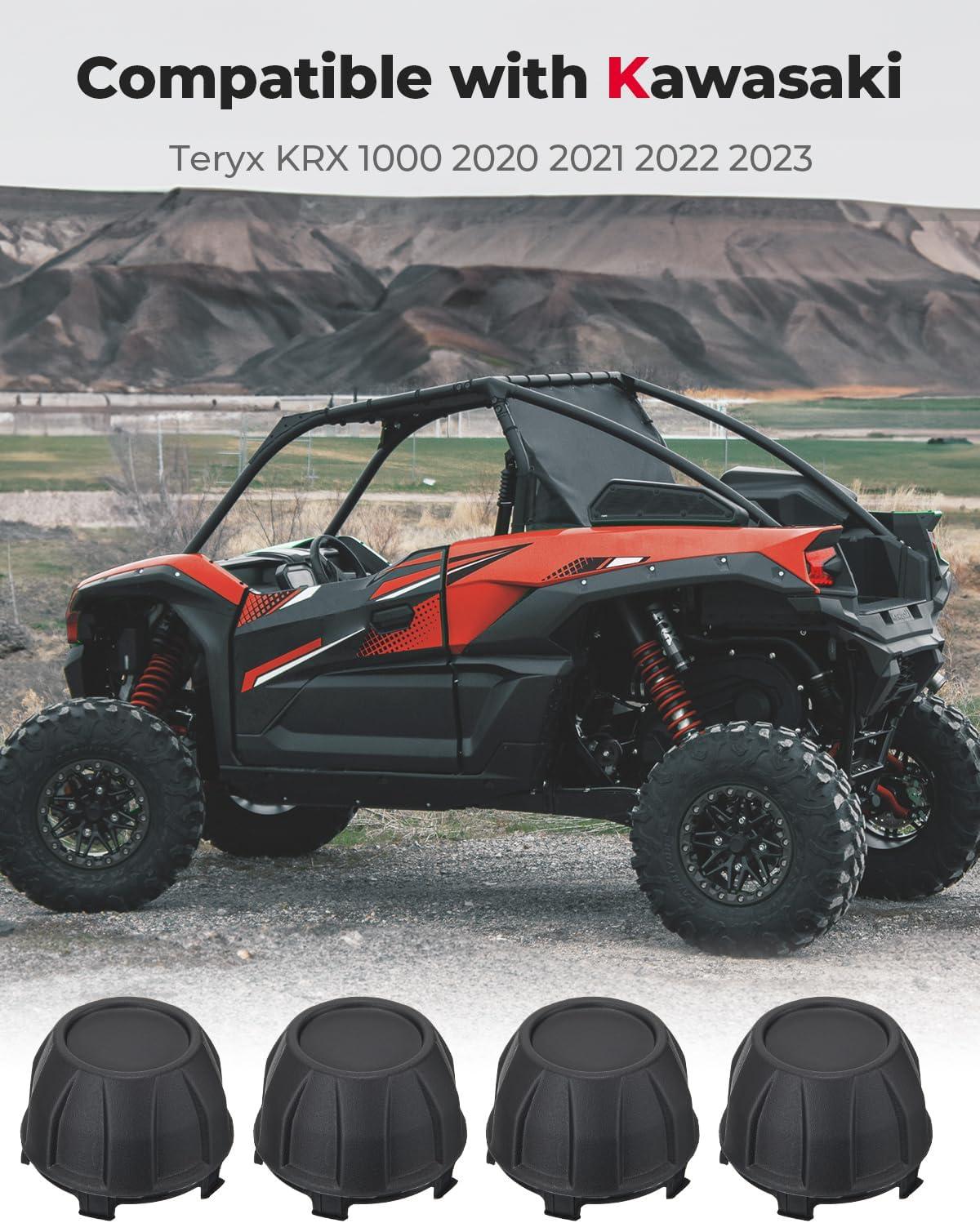 Package Includes : 4 PCS black dust wheel caps compatible with Kawasaki KRX 1000 hubcaps kits