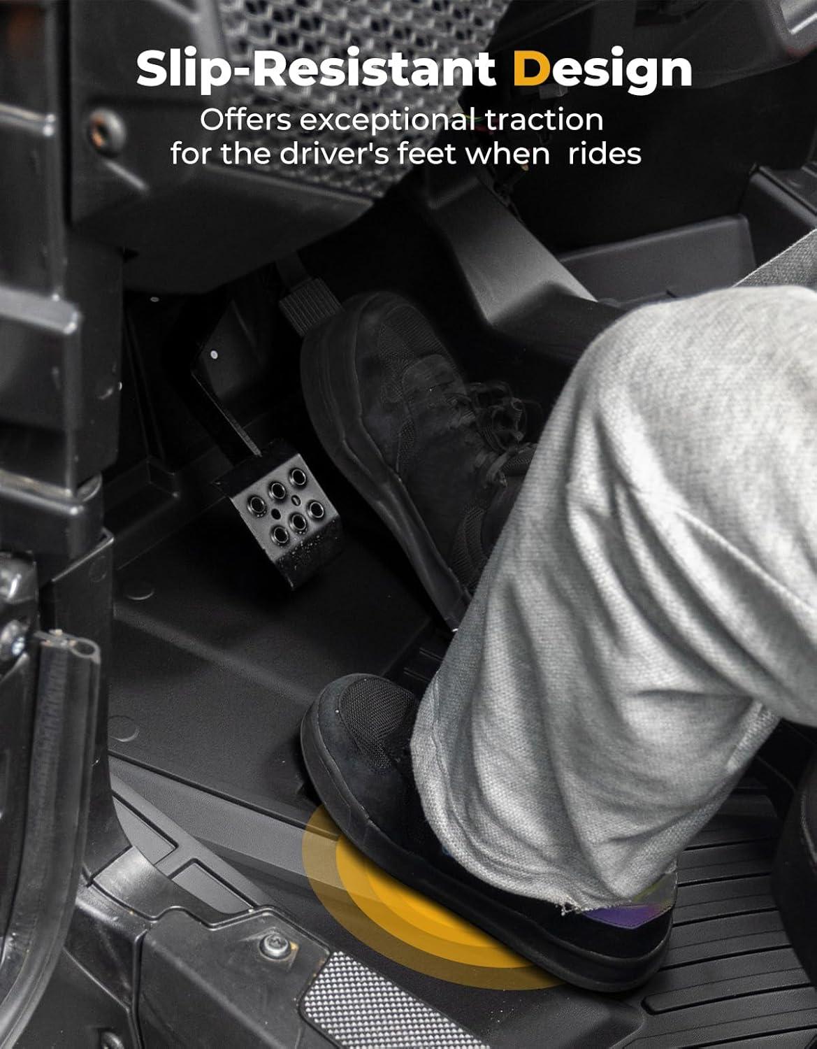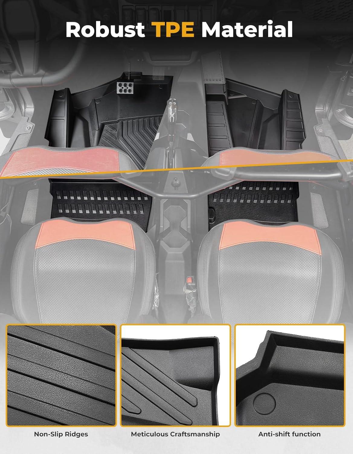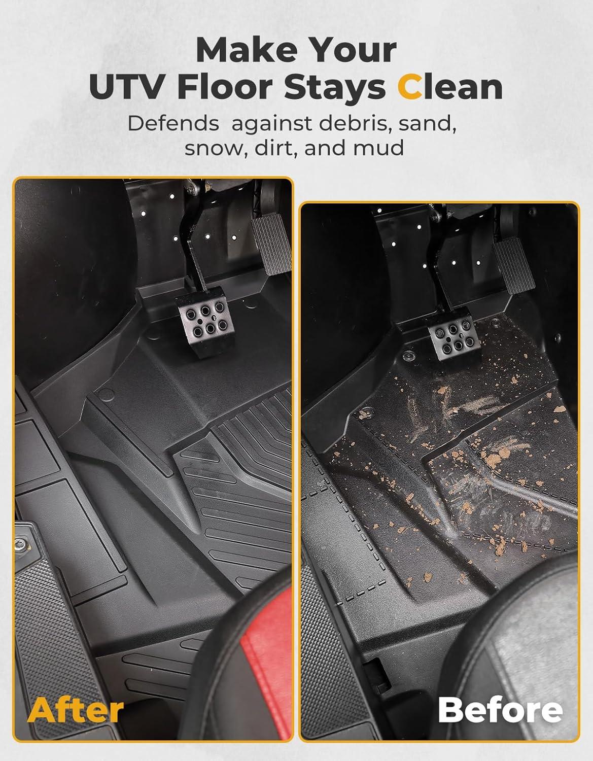 Anti-Skid & Easy to Clean:Equipped with an anti-slip surface, these mats offer enhanced traction, which significantly improves safety during rides or races. If the UTV liner is dirty, just remove the floor liner from the vehicle and clean it with a hose