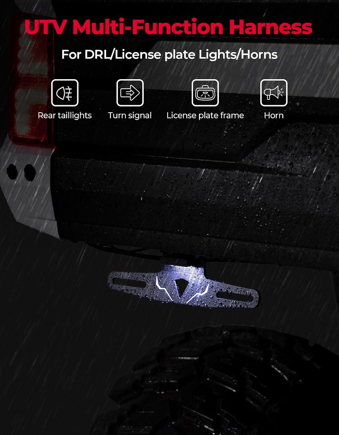 Pre-Wired Plug-and-Play Harness: This UTV turn signal kit with harness label for easy installation. This harness includes everything you need: power harness(Only Compatible with 2018+ Polaris Ranger XP 1000/2014-2023 RZR XP 1000), horn, rocker switch, OEM tail light, dashboard, license plate light, ECU, and more—all wires are pre-connected and ready to plug in