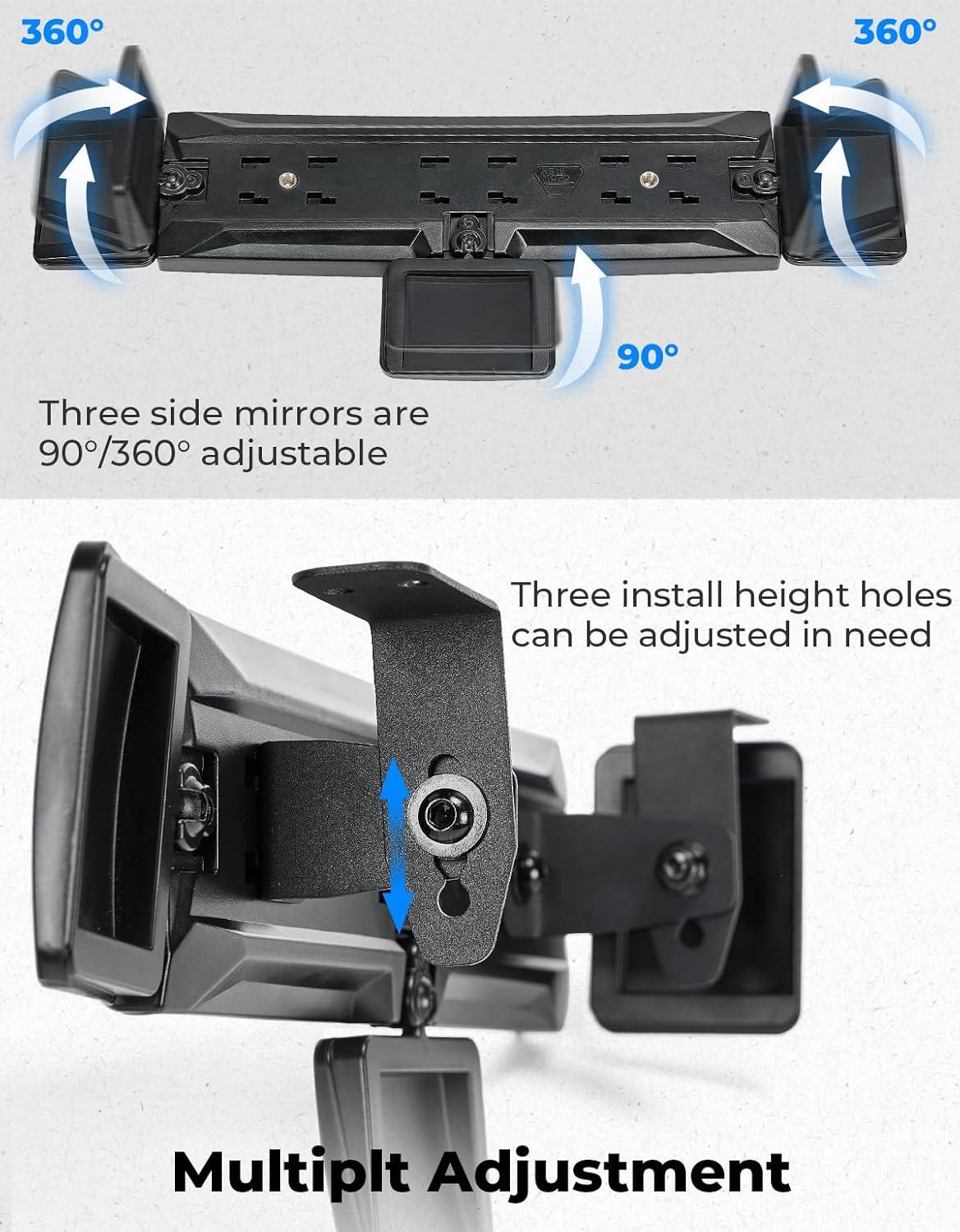 Multi-Angle Adjustment: The included small mirror can rotate 360 degrees and tilt 90 degrees, while the entire mirror assembly can be adjusted up and down by 270 degrees. This ensures comprehensive rearview coverage to meet various visibility needs.