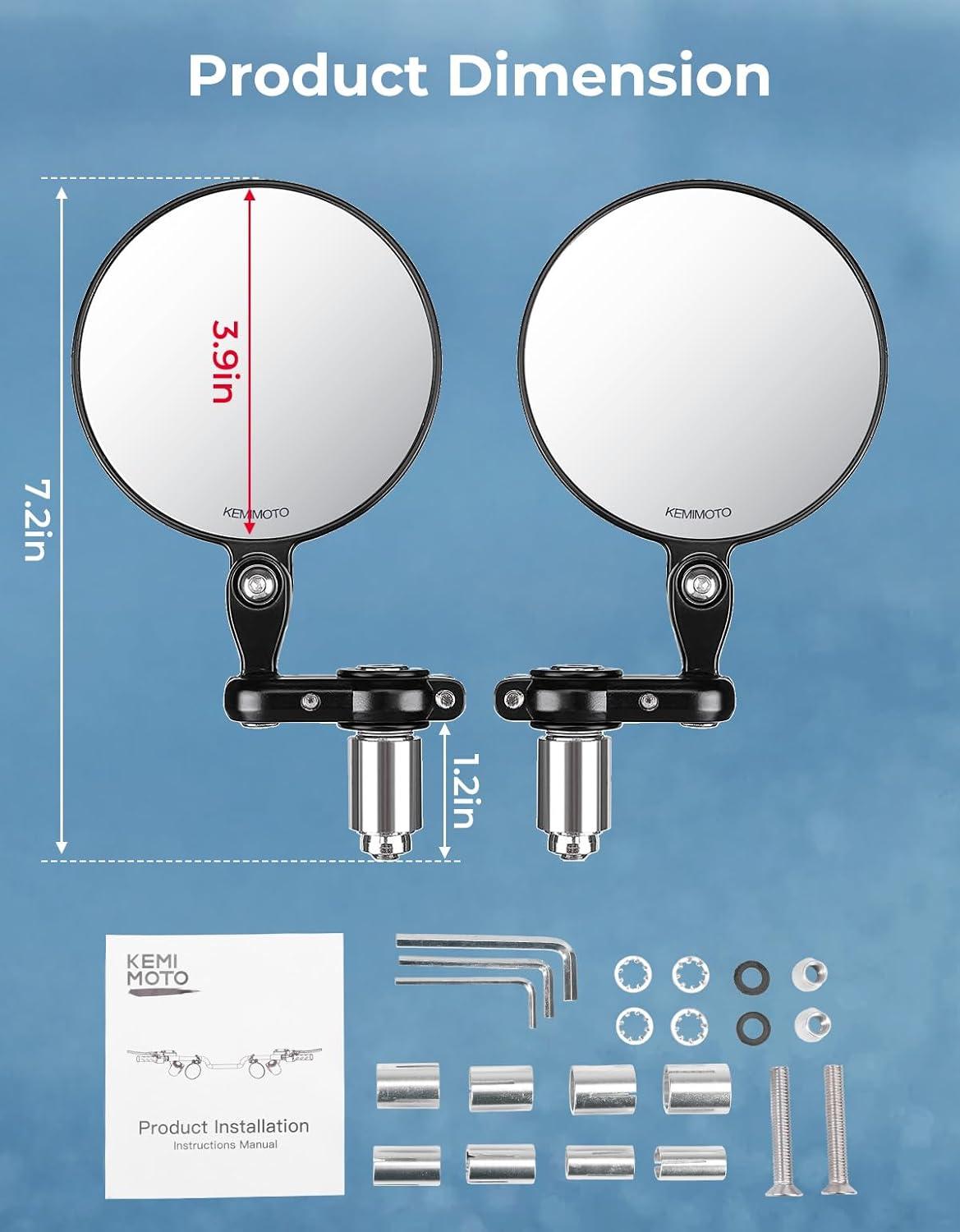 Crystal Clear Vision: KEMIMOTO motorcycle mirrors are designed to offer high clarity and a wider field of vision, you can easily see surrounding vehicles and obstacles, ensuring your safety while driving