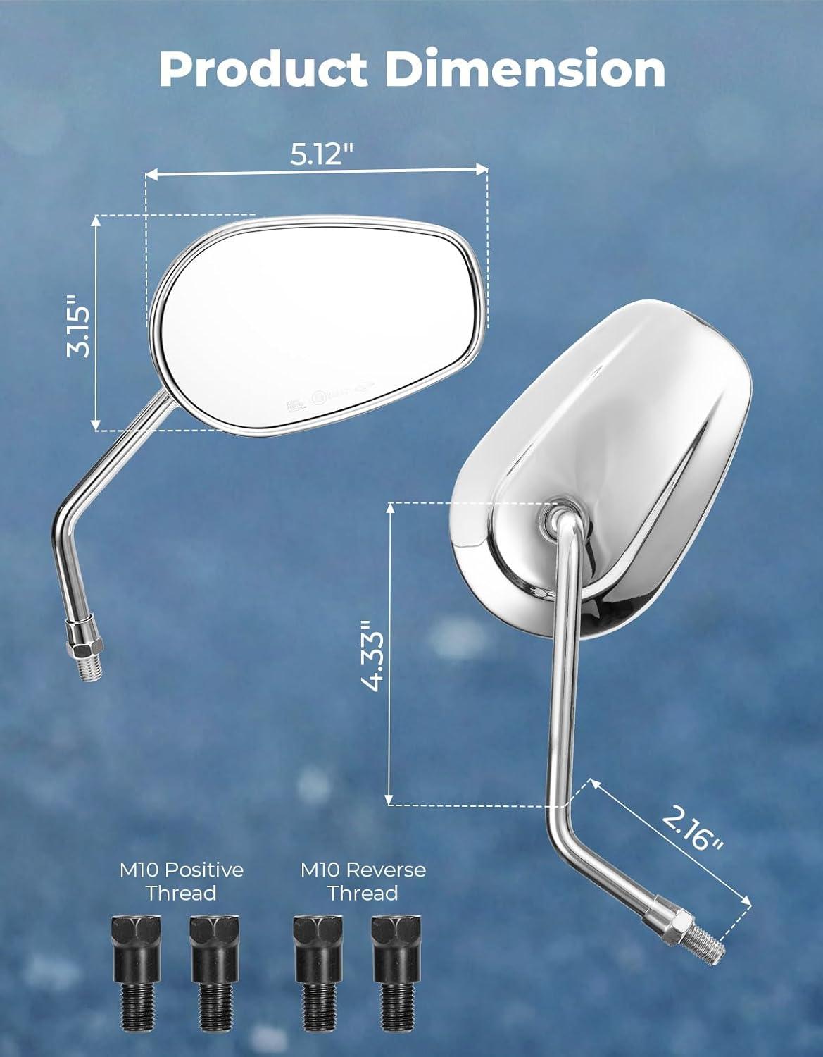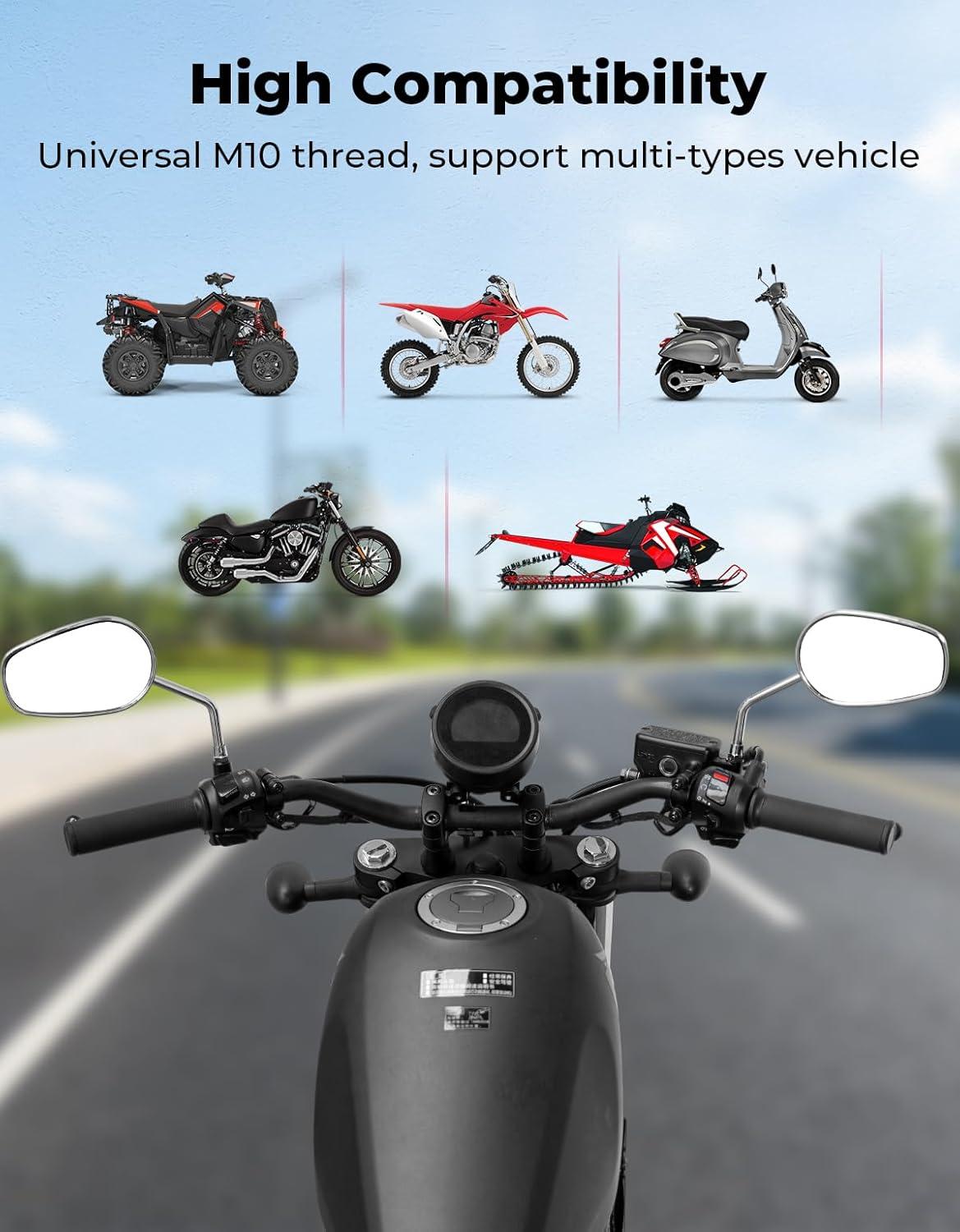 Wide Compatibility: Fits motorcycles with 10mm threaded mounts (including 2 x 10mm standard adapters and 2 x 10mm reverse adapters). Suitable for street bikes, dirt bikes, ATVs, scooters, electric bikes, and bicycles. Note: Not compatible with M8 threads.